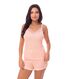 Baby Doll confeccionado em malha Liberty, leve e macia, com estampas clássicas, delicadas e atemporais. A blusa apresenta alças reguláveis no mesmo material do viés, garantindo ajuste perfeito e conforto. O decote em V suave no peito é finalizado com acabamento em renda tom sobre tom, acrescenta um toque sofisticado e feminino, além da delicada flor em cetim que valoriza o detalhe. O short, de comprimento curto, possui caimento leve e confortável, com viés aplicado um pouco acima da barra, mantendo a harmonia com a blusa e reforçando a estética romântica do conjunto.