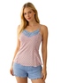 delicadeza. Na barra, um babado franzido confere charme e movimento, adicionando um toque de elegância ao visual. As alças finas com regulagem permitem melhor ajuste ao corpo. Na parte superior acima do seio um lindo recorte em renda que confere feminilidade a peça. O short em comprimento curto, liso na mesma cor da blusa transforma o conjunto em uma peça única e elegante. Nesta temporada, a coleção Maré Serena destaca um poá delicado que volta com força nessa estação. Ideal para quem busca beleza, conforto e estilo nos momentos de descanso.