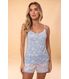 Por ter os detalhes em renda podemos dizer que o Baby Doll Marina tem uma pitada romântica. A renda do busto e da barra do short valorizam o corpo. A modelagem é um pouco mais ajustada e o frescor vem do modelo de alcinhas.. Desenvolvido em Peach Skin, uma malha com excelente toque, macio como pele de pêssego (como sugere o nome). A estamparia deste produto foi desenvolvida pelo processo de sublimação, especialmente para a marca, remetendo ao tema da coleção, explorando elementos como crustáceos, lemes e cordas com muita harmonia. Neste processo a estampa é transferida de um papel especial para a malha, através do calor. Nas cores, exploramos o marrom e o verde, muito em alta nesta estação, mas também, os tradicionais delicados azul e rosa, trazendo a calmaria de uma maré serena.