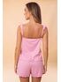 A malha escolhida para a criação do baby doll Sabrina foi a Peach Vellutato, um produto de excelente qualidade, com toque macio e aveludado como a pele de pêssego. O modelo delicado conta com babados nas alças e acabamentos em frufru, muito romântico e feminino. O destaque final fica por conta de um bordado no short desenvolvido exclusivamente para este produto, com elementos que remetem ao tema da coleção.