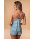 Este modelo de baby doll possui um ar de sensualidade que se mescla a elementos românticos. Formada por um mix de malha Capri com tule da mesma estampa, este modelo nos mostra um interessante jogo de transparências que fica completo com a renda Chantilly valorizando o busto. Já o short é para quem gosta de um modelo mais curto. Esta malha é extremamente leve e fina, composta por um tipo de poliéster que passa por diversas tecnologias que o deixarão com o toque geladinho da poliamida. Além disso, em sua composição temos o elastano que traz todo o conforto para este lindo baby doll.