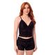 Conjunto de lingerie confeccionado em renda delicada e sofisticada, com design que valoriza as formas femininas. A calcinha tipo caleçon possui recortes estratégicos, acabamento rendado e modelagem que contorna o corpo com charme e sensualidade, oferecendo conforto e um visual marcante. O sutiã apresenta base mais larga em renda, proporcionando maior sustentação, além de bojo estruturado com recortes frontais nos seios que criam um efeito visual atraente. O modelo conta ainda com alças reguláveis para melhor ajuste e um delicado laço central, que finaliza a peça com um toque romântico. Ideal para mulheres que buscam beleza, conforto e atitude em uma lingerie especial.
