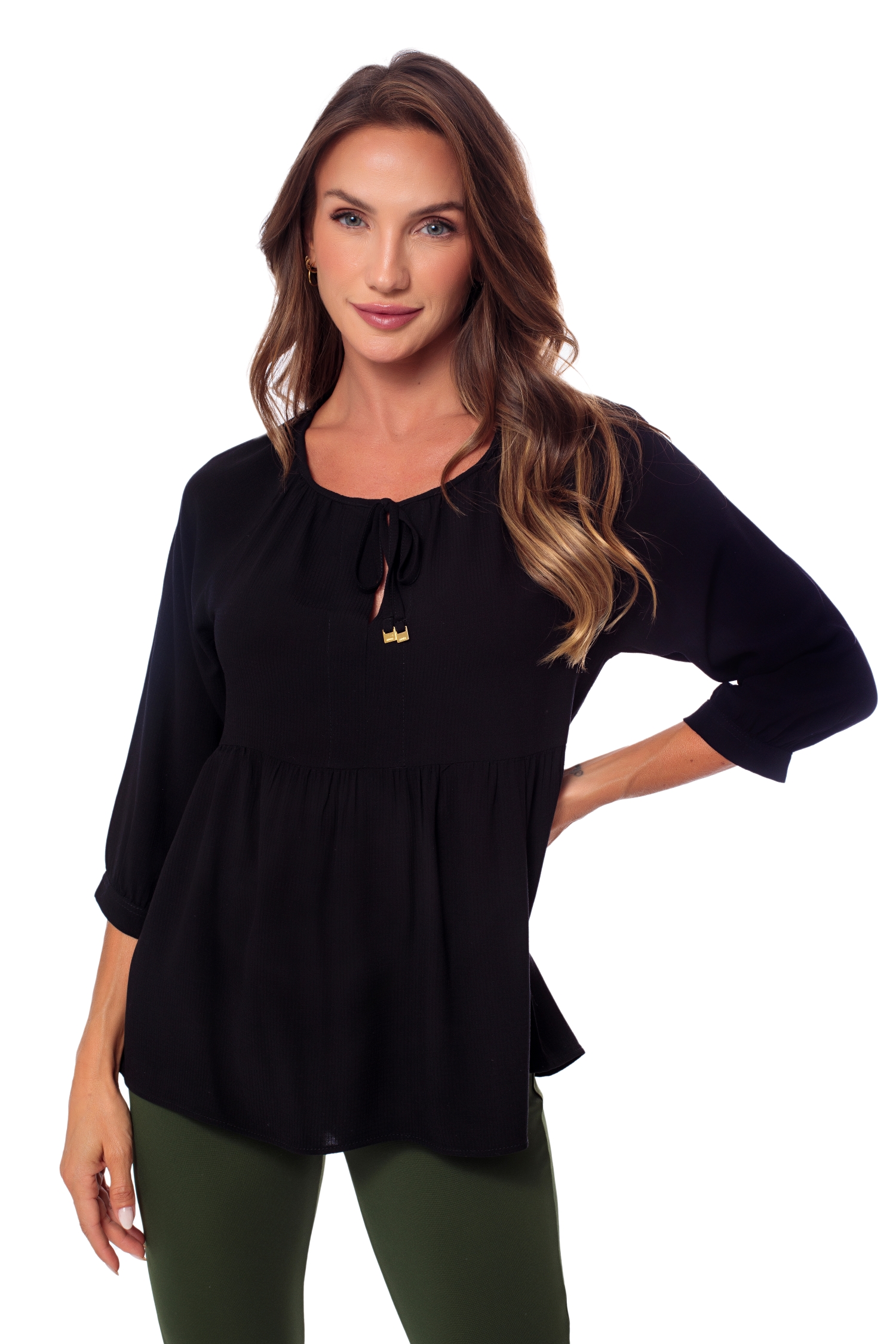 A marca DN CASUAL está em ascenção no mercado. Pensando nisso, ampliamos a oferta de peças em tecido plano. Inspirada na moda boho, que já é sucesso nesta estação, desenvolvemos a bata REBECA, com modelagem toda soltinha, com recortes e franzidos muito bem modelados em tecido plano 100% viscose, texturizado, de excelente caimento e frescor. Uma peça cheia de estilo para compor looks super modernos.