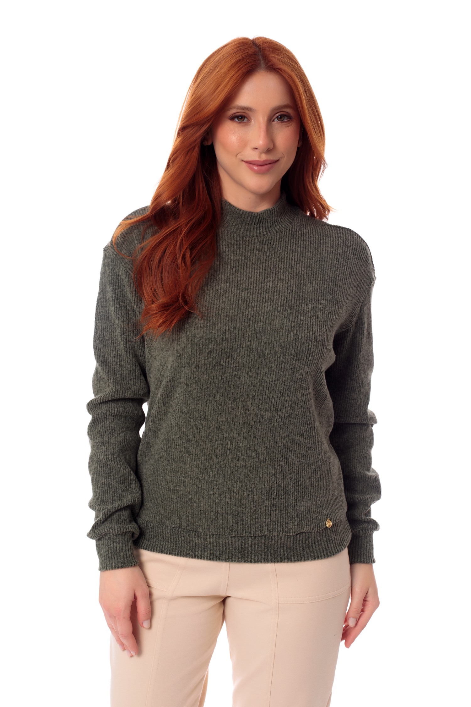 Perfeita para os dias mais fresquinhos, esta blusa em malha canelada Mescla New conquista pelo toque suave e visual super fofinho. Confeccionada em um tecido que alia conforto e aconchego, ela traz punhos, gola e cós no mesmo material, garantindo unidade e delicadeza no acabamento. Com gola mais alta, que abraça o pescoço e protege do frio, essa blusa é ideal para quem busca praticidade sem abrir mão do estilo. Quentinha e charmosa, é daquelas peças que aquecem o corpo e o coração ? essencial no guarda-roupa de inverno.