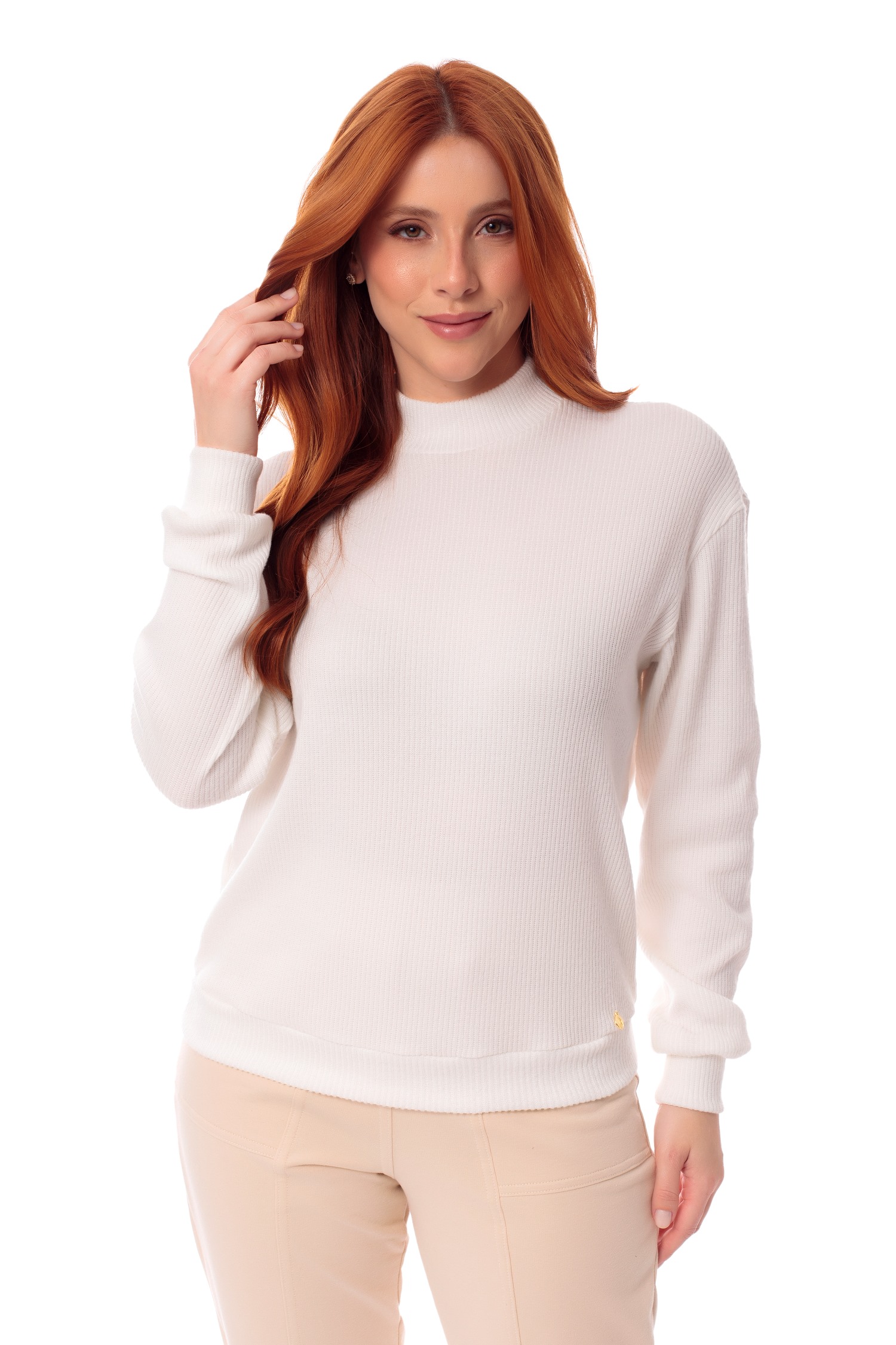 Perfeita para os dias mais fresquinhos, esta blusa em malha canelada Mescla New conquista pelo toque suave e visual super fofinho. Confeccionada em um tecido que alia conforto e aconchego, ela traz punhos, gola e cós no mesmo material, garantindo unidade e delicadeza no acabamento. Com gola mais alta, que abraça o pescoço e protege do frio, essa blusa é ideal para quem busca praticidade sem abrir mão do estilo. Quentinha e charmosa, é daquelas peças que aquecem o corpo e o coração ? essencial no guarda-roupa de inverno.