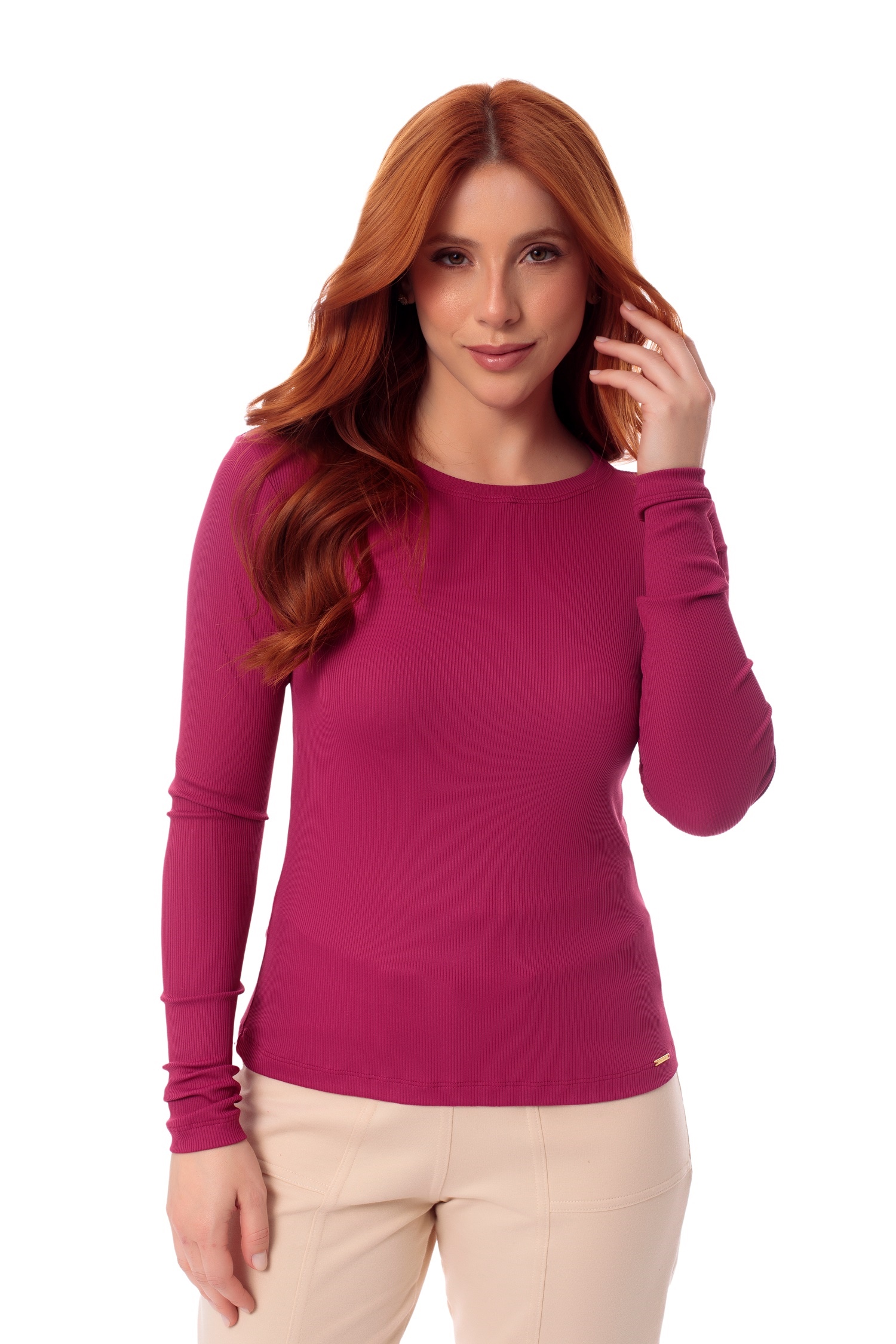 diversos looks, tanto de inverno, como de verão. Produzida em Femina Fashion, um canelado de poliamida extremamente fresco e macio, com o toque de malha fria, que tem como característica a alta durabilidade. Modelo básico e atemporal disponível em manga curta.