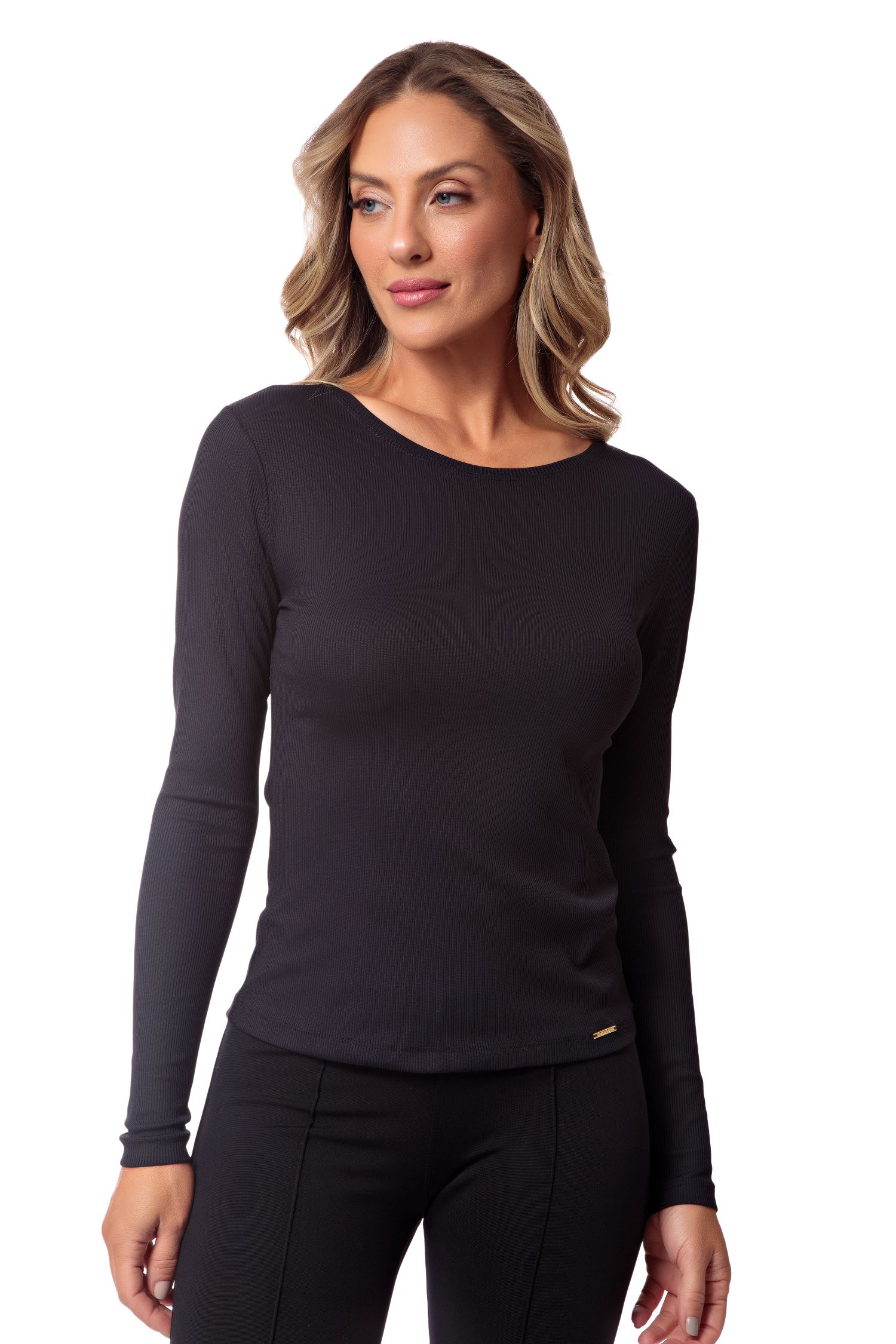 De modelagem básica, ajustada ao corpo, este modelo é aquele ?curinga? que toda mulher gosta de ter para compor os mais diversos looks, tanto de inverno, como de verão. Produzida em Femina Fashion, um canelado de poliamida extremamente fresco e macio, com o toque de malha fria, que tem como característica a alta durabilidade. Modelo básico e atemporal disponível em manga curta.