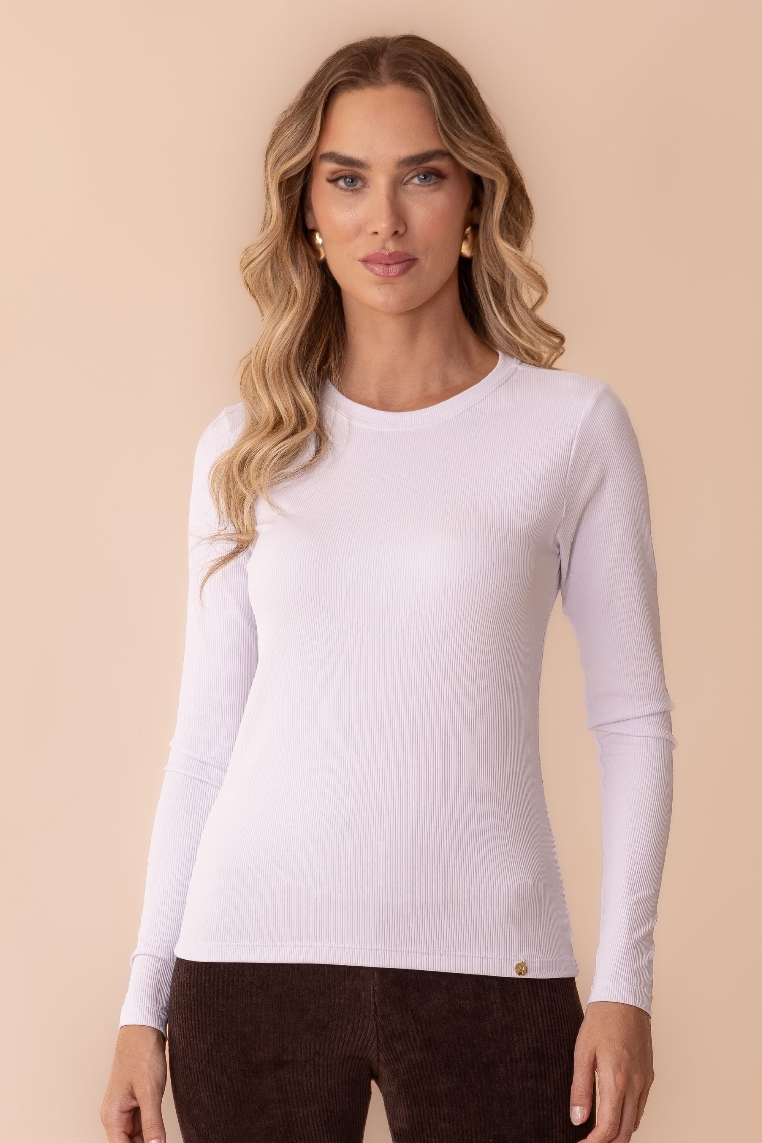 De modelagem básica, ajustada ao corpo, este modelo é aquele ?curinga? que toda mulher precisa ter para auxiliar na composição dos looks do dia a dia. Produzida em Ribana de Poliamida, uma malha de alta tecnologia com superfície canelada, focado em conforto, alta elasticidade e excelente caimento para o corpo. Modelo básico e atemporal disponível em mangas curtas e também em mangas longas. Peça prática pois possui secagem rápida e não amarrota.