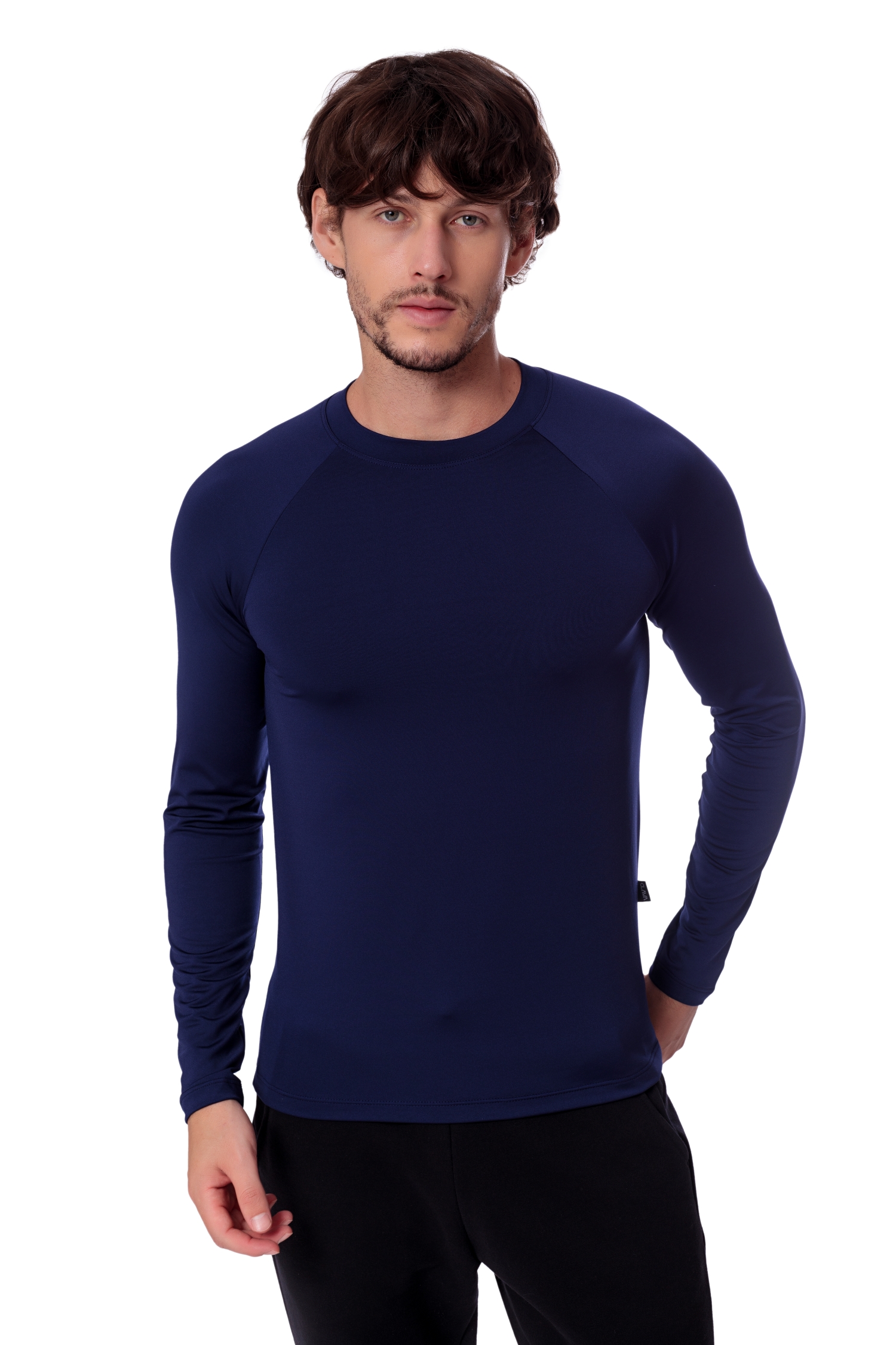 Blusa masculina funcional, com modelagem ajustada ao corpo, desenvolvida para proporcionar conforto térmico nas baixas