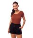 A blusa Camila é um modelo básico que encontra o seu diferencial na malha, denominada anarruga, ou seja, uma malha que possui uma textura ?enrrugada?, franzida. A junção da viscose com a poliamida traz leveza e frescor para este modelo. A modelagem é ajustada ao corpo, pois este artigo permite um ajuste muito confortável por conta da alta elasticidade.