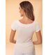 A blusa Camila é um modelo básico que encontra o seu diferencial na malha, denominada anarruga, ou seja, uma malha que possui uma textura enrrugada, franzida. A junção da viscose com a poliamida traz leveza e frescor para este modelo. A modelagem é ajustada ao corpo, pois este artigo permite um ajuste muito confortável por conta da alta elasticidade.