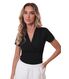 A blusa Camila é um modelo básico que encontra o seu diferencial na malha, denominada anarruga, ou seja, uma malha que possui uma textura ?enrrugada?, franzida. A junção da viscose com a poliamida traz leveza e frescor para este modelo. A modelagem é ajustada ao corpo, pois este artigo permite um ajuste muito confortável por conta da alta elasticidade.