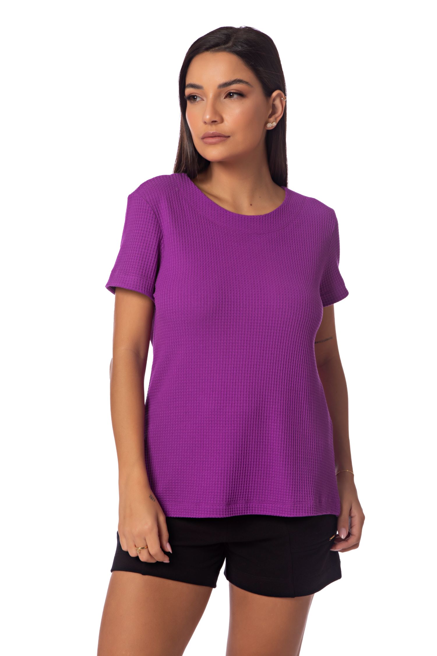 Seguindo a mesma proposta coleção anterior, nesta edição modificamos os acabamentos e a matéria-prima, optando pela malha texturizada Volare. Esta malha traz o caimento e o frescor da viscose, com o aspecto artesanal do crochê, tendência hand made, tão em alta após a pandemia. A modelagem é solta do corpo e a prega nas costas dá um charme a mais. Disponível em 4 cores. *Produto vendido individualmente. Não acompanha demais produtos ou acessórios visíveis na imagem.