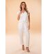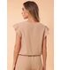 A blusa Marília traz para a mulher um ar romântico, caracterizado por suas mangas em forma de babados e uma amarração na cintura muito feminina. A modelagem é cropped e bastante confortável, pois é curta mas não expôe o corpo. Confeccionada em tecido plano peach twill, que possui viscose em sua composição, trazendo caimento e frescor para a peça. Tecidos com o nome twill, também conhecido como sarja, são caracterizados por uma trama diagonal que confere alta resistência, durabilidade e um caimento estruturado e elegante. Já a palavra peach é usada para artigos que possuem um toque macio, tipo pele de pêssego, muito agradáveis. Sugestão: coordenar com a calça Marília desta coleção, formando um lindo conjunto.