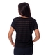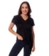 Blusa em malha fashion canelada, uma malha com aspecto rendado listrado, que possui transparência discreta. A modelagem é solta do corpo e o charme deste modelo em decote ?V? está no detalhe de amarração na barra.