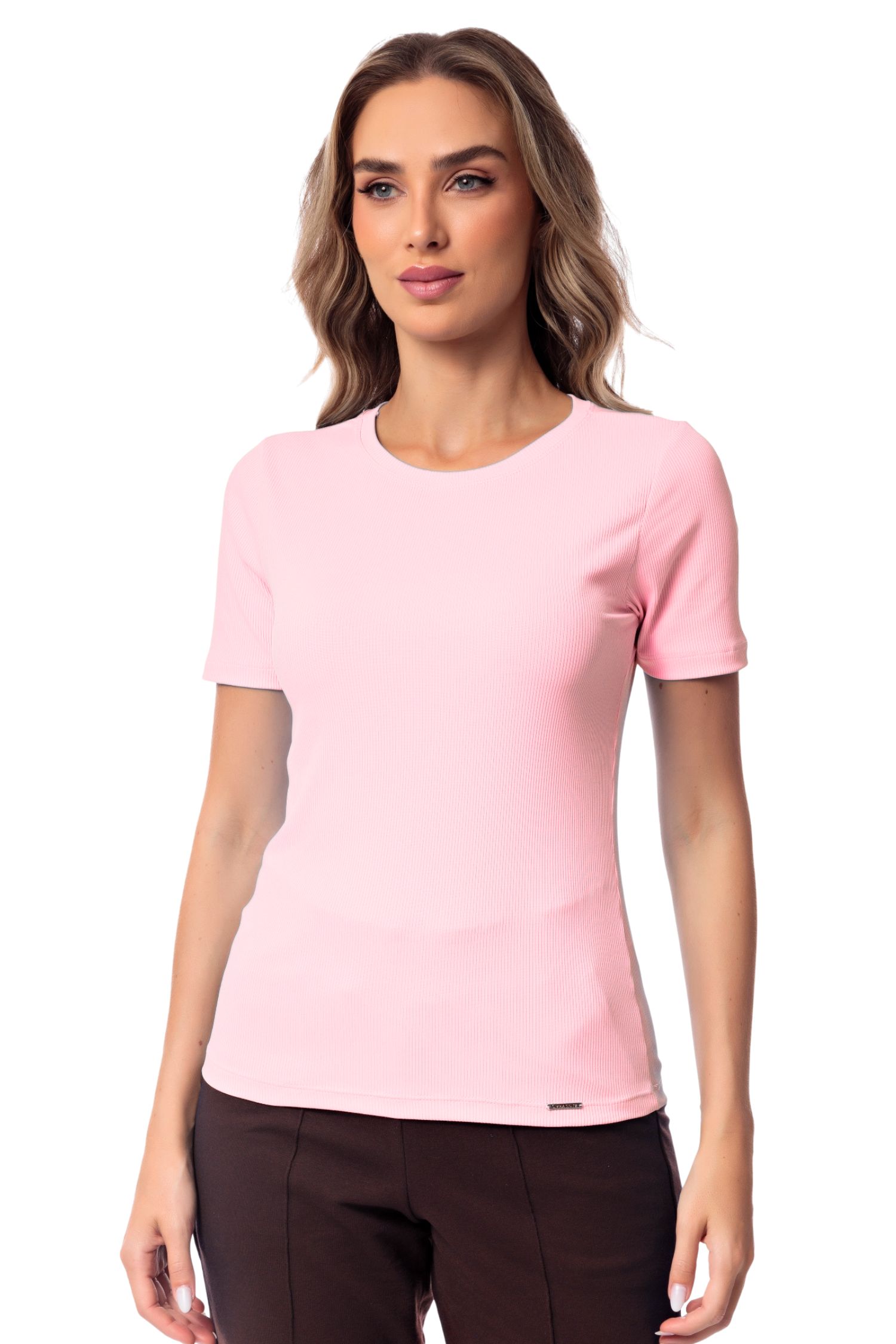 De modelagem básica, ajustada ao corpo, este modelo é aquele ?curinga? que toda mulher precisa ter para auxiliar na composição dos looks do dia a dia, nas 4 estações. Produzida em Ribana de Poliamida, uma malha de alta tecnologia com superfície canelada, focado em conforto, alta elasticidade e excelente caimento para o corpo. Modelo básico e atemporal disponível em mangas curtas e também em mangas longas. Peça prática pois possui secagem rápida e não amarrota.