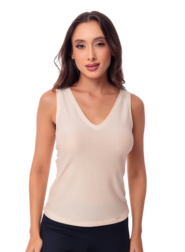 De modelagem ajustada ao corpo e decote V, que alonga a silhueta, esta regata nunca sai de moda, sendo uma grande aliada na composição dos mais diversos looks. Produzida em Canelado Fashion, um canelado de poliamida extremamente fresco e macio, com o toque de malha fria.