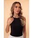 A blusa Regina é mais uma opção de blusa que a marca oferece para você poder compor com as calças e as saias da coleção. Produzida em canelado Boreal, uma malha confortável e fresca, muito bem aproveitada no verão. Esta malha possui canelado estreito e é desenvolvida de forma sustentável com viscose e elastano da mais alta qualidade. A modelagem desta blusa é ajustada ao corpo e seu design valoriza o busto, pois os acabamentos se cruzam na frente, formando um decote popularmente conhecido como decote em X.