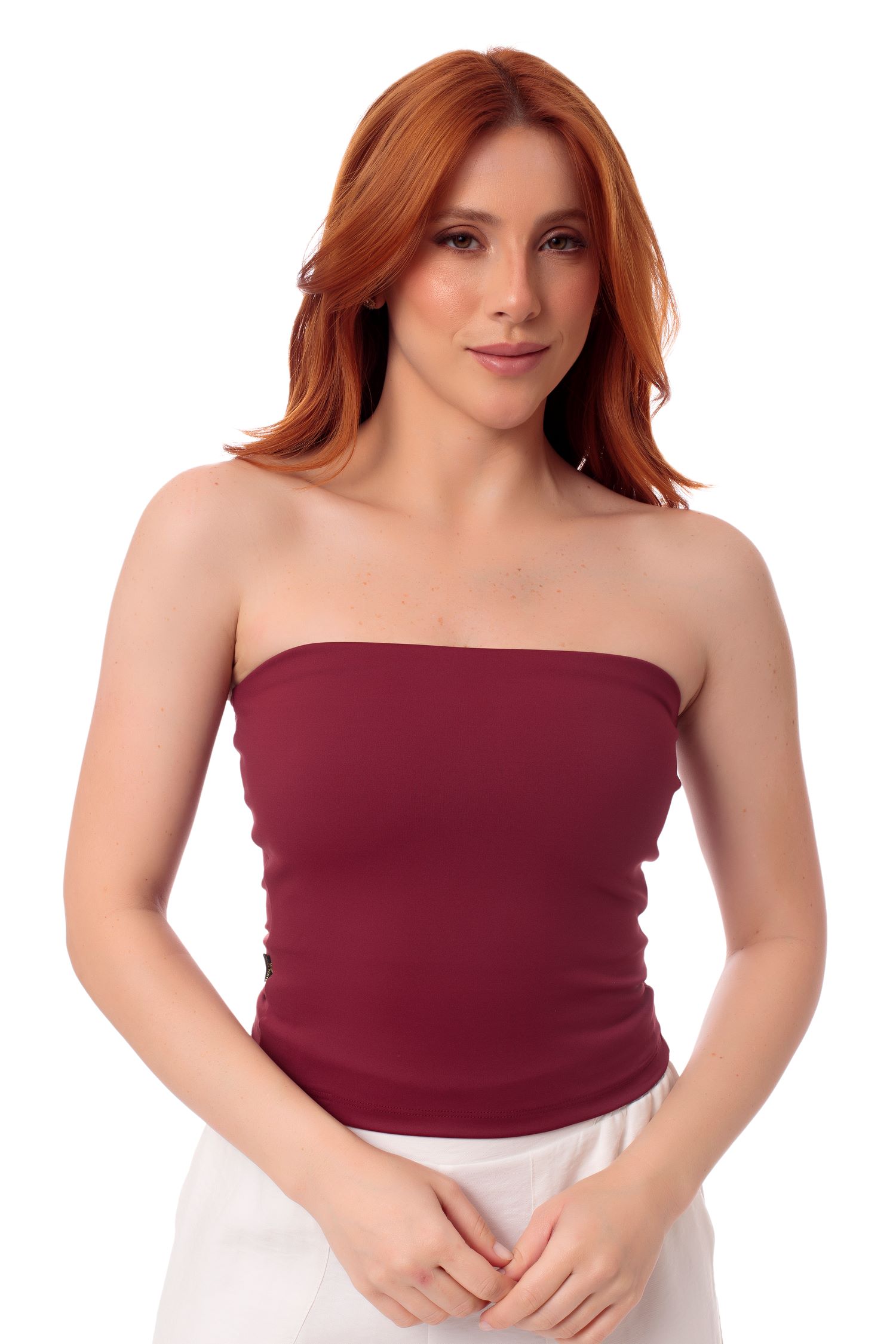 Em uma releitura dos antigos tops tomara que caia, as tendências de moda trouxeram o tube top ou top tube, como preferir. Essa atualização chegou de forma minimalista, em tops lisos e inteiros, sem recortes, lembrando um tubo mesmo. Por ser uma peça básica e versátil, o tube top entrou para a coleção, trazendo opções para nossas clientes usarem sozinho ou por baixo de casacos e blazers, montando looks elegantes e confortáveis.