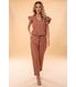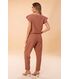 Calça feminina estilo jogger, com modelagem confortável um pouco mais ajustada nas pernas, ideal para composições casuais. A calça Marília conta com cós de elástico para maior praticidade no vestir e conforto no uso. Confeccionada em tecido plano peach twill, que possui viscose em sua composição, trazendo caimento e frescor para a peça. Tecidos com o nome twill, também conhecido como sarja, são caracterizados por uma trama diagonal que confere alta resistência, durabilidade e um caimento estruturado e elegante. Já a palavra peach é usada para artigos que possuem um toque macio, tipo pele de pêssego, muito agradáveis. Sugestão: coordenar com a blusa Marília desta coleção, formando um lindo conjunto.