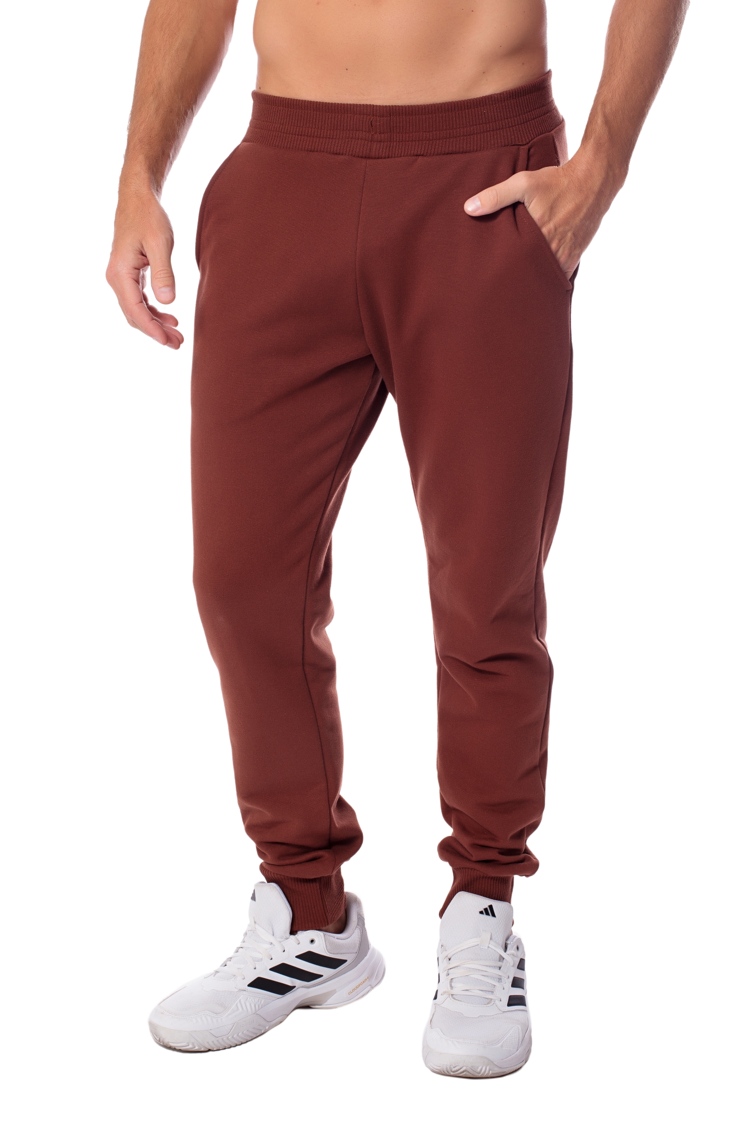 Calça de moletom masculina desenvolvida em Sport Fleece, um moletom que possui elastano em sua composição, o que entrega um produto extremamente maleável e confortável. A modelagem é mais ajustada e moderna do tipo slim e contribui para looks esportivos/casuais, podendo também ser utilizado na prática esportiva. Esta calça é indicada para dias ou noites não tão frias (não é peluciado). Seu design conta com bolsos embutidos nas laterais, pala traseira pespontada, acabamentos em ribana 2x1 e amarração funcional no cós (parte interna) para regulagem do tamanho da cintura.