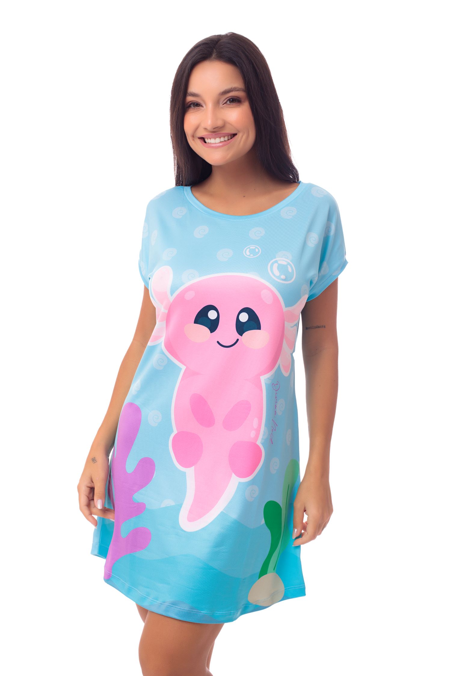 Camisetão de modelagem solta e confortável, perfeito para noites leves e relaxantes. Confeccionado em tecido Peach Skin, que possui toque macio e suave semelhante ao da pele de pêssego, oferece frescor e excelente caimento. O design conta com recorte frente e verso, além de mangas japonesas, que proporcionam liberdade de movimentos e um visual despojado. Pertencente a linha divertida, a peça é valorizada por estampas exclusivas desenvolvidas especialmente para o verão, unindo praticidade, estilo e descontração.