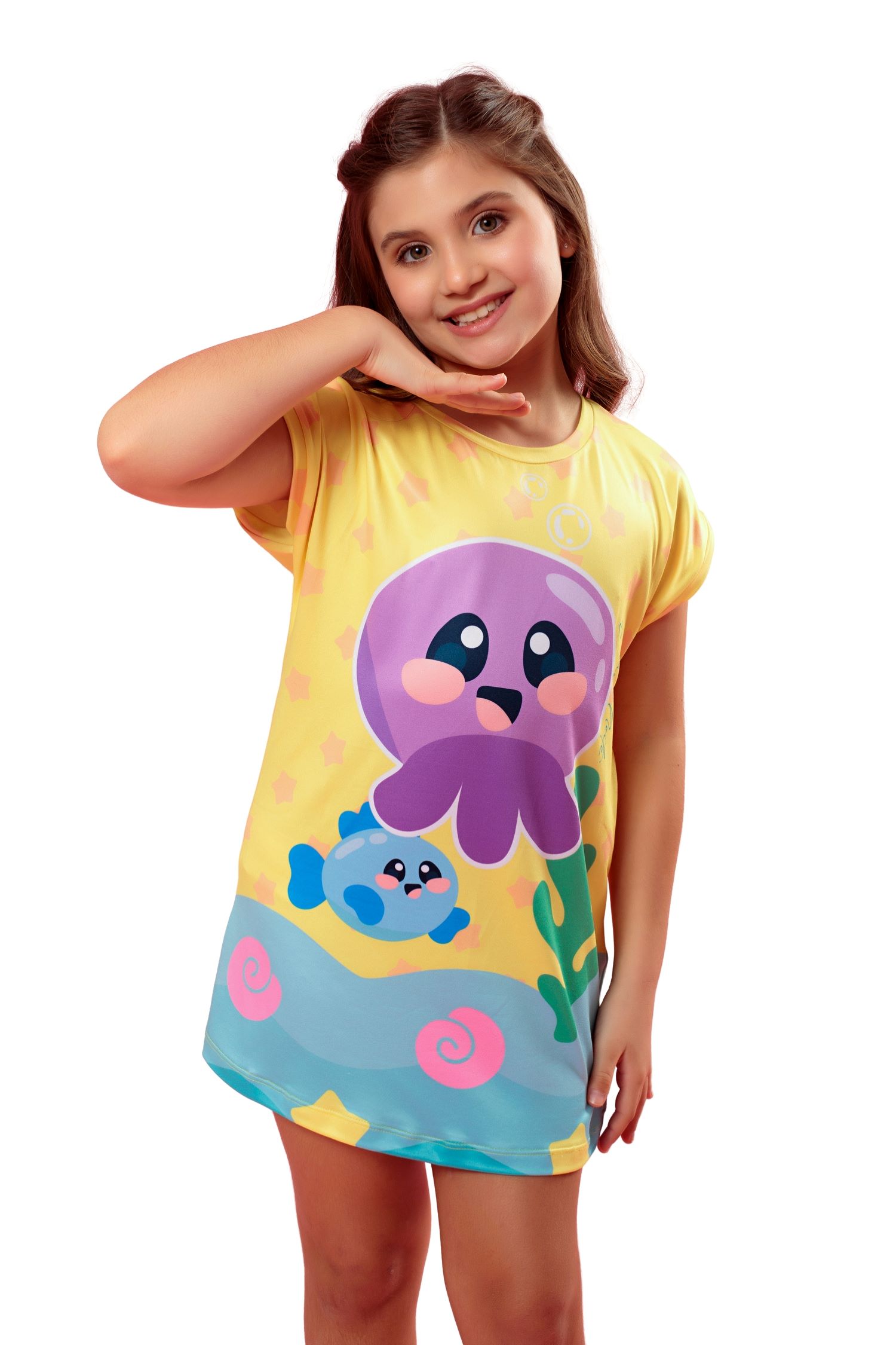 Camisetão de modelagem solta e confortável, perfeito para noites leves e relaxantes. Confeccionado em tecido Peach Skin, que possui toque macio e suave semelhante ao da pele de pêssego, oferece frescor e excelente caimento. O design conta com recorte frente e verso, além de mangas japonesas, que proporcionam liberdade de movimentos e um visual despojado. Pertencente a linha divertida, a peça é valorizada por estampas exclusivas desenvolvidas especialmente para o verão, unindo praticidade, estilo e descontração.