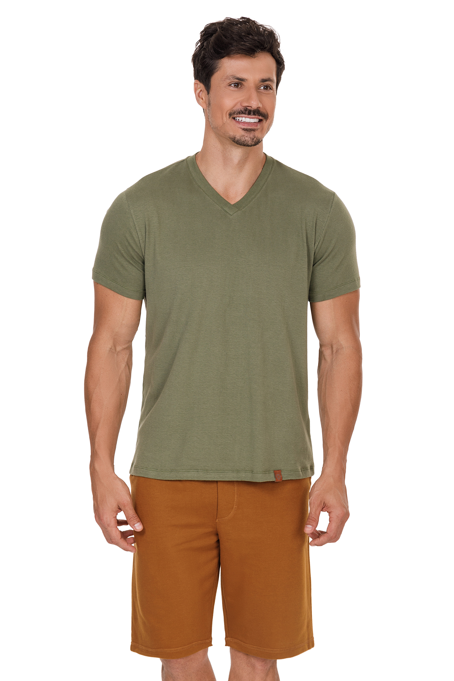 Uma peça básica e extremamente confortável, a Camiseta Masculina com decote "em V", é uma peça avulsa para ser usada no dia a dia ou como pijama. *Produto vendido individualmente. Não acompanha demais produtos ou acessórios visíveis na imagem.