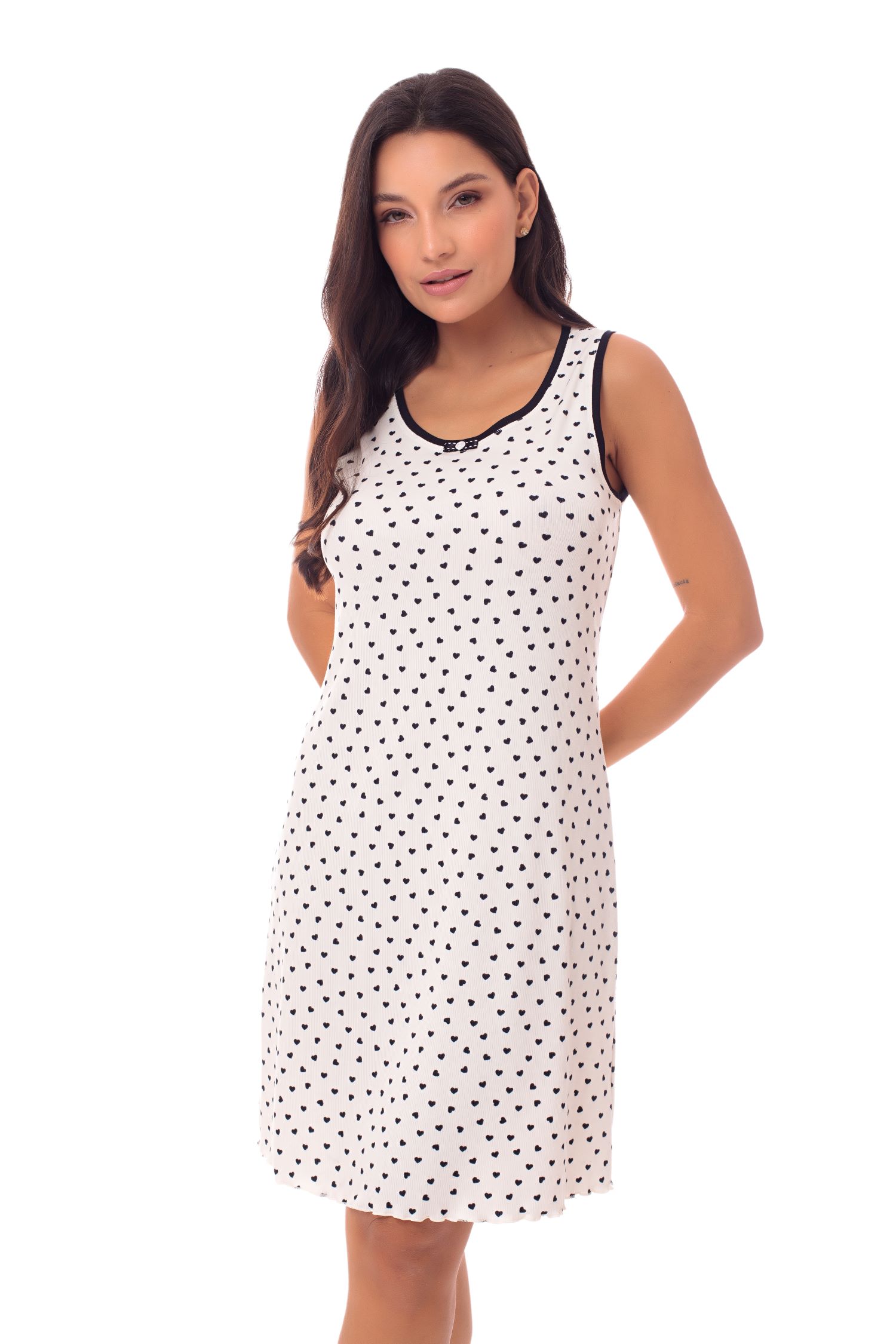 Camisola confeccionada em malha Liberty, leve e macia com estampas clássicas, delicadas e atemporais. Possui modelagem solta, oferecendo conforto e fluidez ao vestir, com comprimento levemente acima do joelho e acabamento em frufru. O design regata apresenta alças mais largas com acabamento em viés, proporcionando bom caimento e durabilidade. A gola arredondada recebe um toque romântico através do detalhe de flor aplicada em cetim, que valoriza o visual delicado e feminino da peça.
