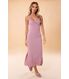 Camisola confeccionada em malha plume, tecido extremamente leve, macio e aconchegante, ideal para o descanso. Em comprimento midi, oferece elegância e sofisticação, sem abrir mão do conforto. Possui alças finas com regulagem, garantindo melhor caimento. O decote em V suave na parte frontal é enriquecido com renda tom sobre tom e finalizado com um delicado detalhe de joia central, que confere um toque de sofisticação à peça. Sua modelagem ajustada ao corpo realça a silhueta com naturalidade, e o franzido na barra traz leveza e movimento ao visual.