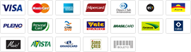 Para a realização de suas compras na Divina Noite Online você poderá utilizar o pagamento através de boleto bancário ou cartão de crédito das seguintes bandeiras: