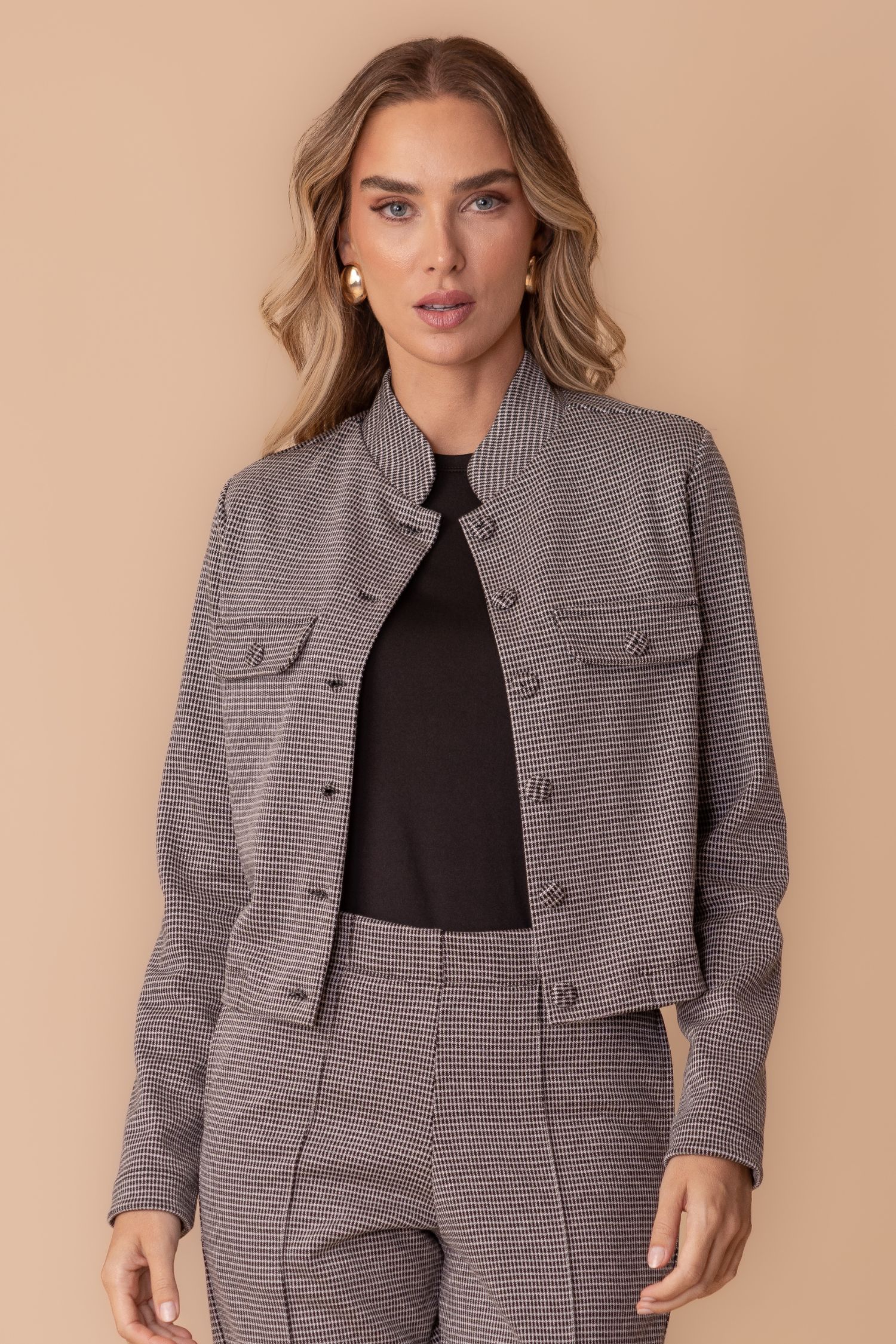 O casaco PARIS foi desenvolvido em Jacquard Chess. uma malha de alta gramatura que fornece uma peça estruturada com muito conforto. Um artigo de alta durabilidade além de alta praticidade, pois não amarrota facilmente. Seu design foi pensado para oferecer uma peça elegante, seus detalhes de gola embutida, lapelas e botões forrados, foram inspirados na alfaiataria. De forma opcional, disponibilizamos na coleção a calça Paris, que juntamente com este casaco, forma um lindo e elegante conjunto.