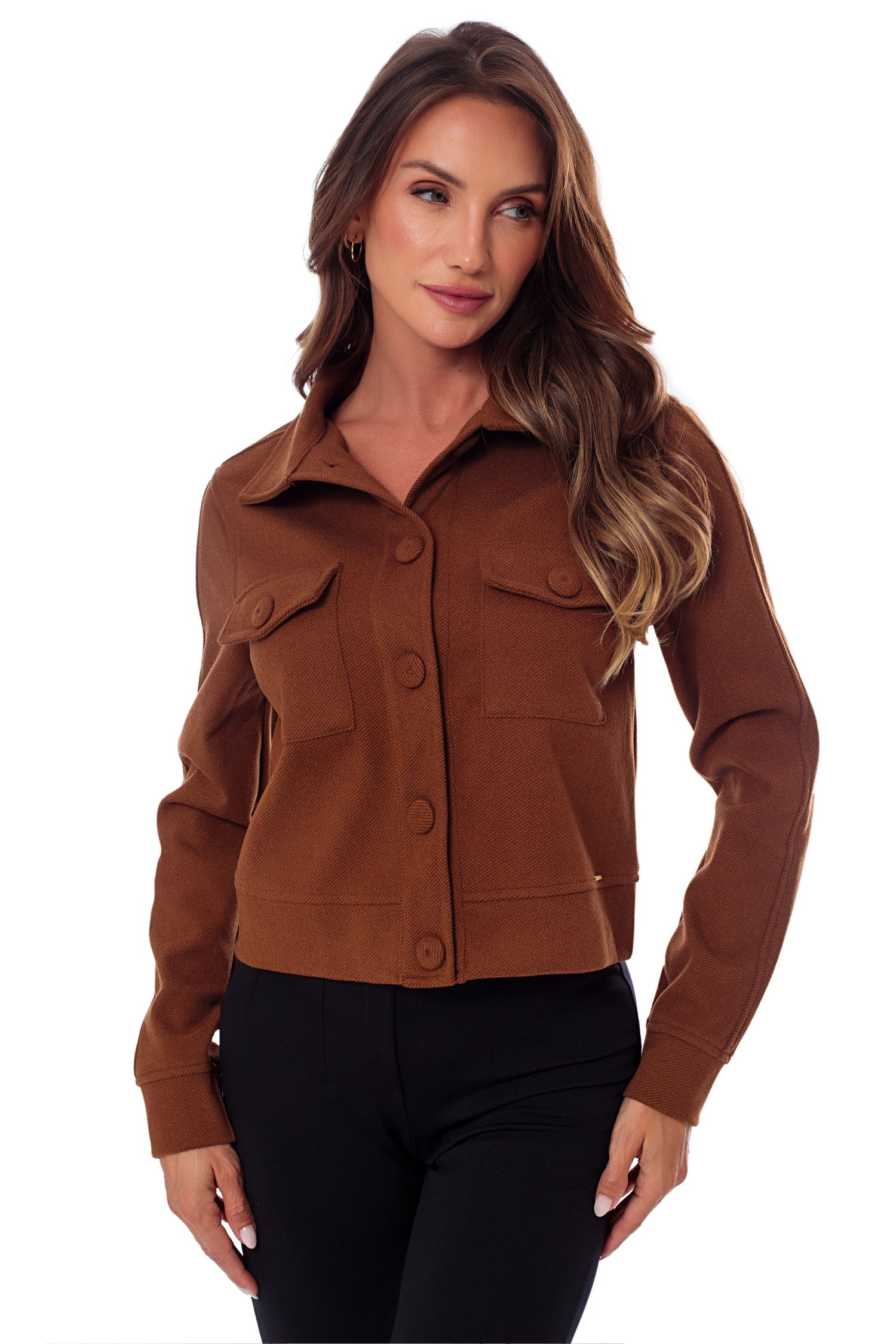 O casaco Suíça é puro charme! Um modelo de casaco mais curtinho, bastante trabalhado com pespontos, bolsos, lapelas e botões forrados em uma malha que tem aspecto de lã batida, denominada lã two tones solid. Essa malha mantém a temperatura do corpo quentinha, por isso garante um bom conforto térmico, ideal para ser usada nos dias frios. As cores escolhidas estão muito em alta neste inverno, o que permite diversas produções bastante atualizadas. O casaco SUÍÇA é estiloso e aquece o corpo com conforto.