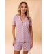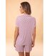 Pijama estilo americano, composto por blusa que lembra uma camisa e short de comprimento confortável. O pijama Carolina é confeccionado em malha leve e macia, a poliamida Plume, também conhecida como ?malha fria?. Este modelo é atemporal e agrada a todos os estilos independente da faixa etária. Além de elegante, o modelo torna-se funcional para mulheres que amamentam, ou que passam por algum procedimento cirúrgico, pois sua abertura facilita o vestir e o despir.