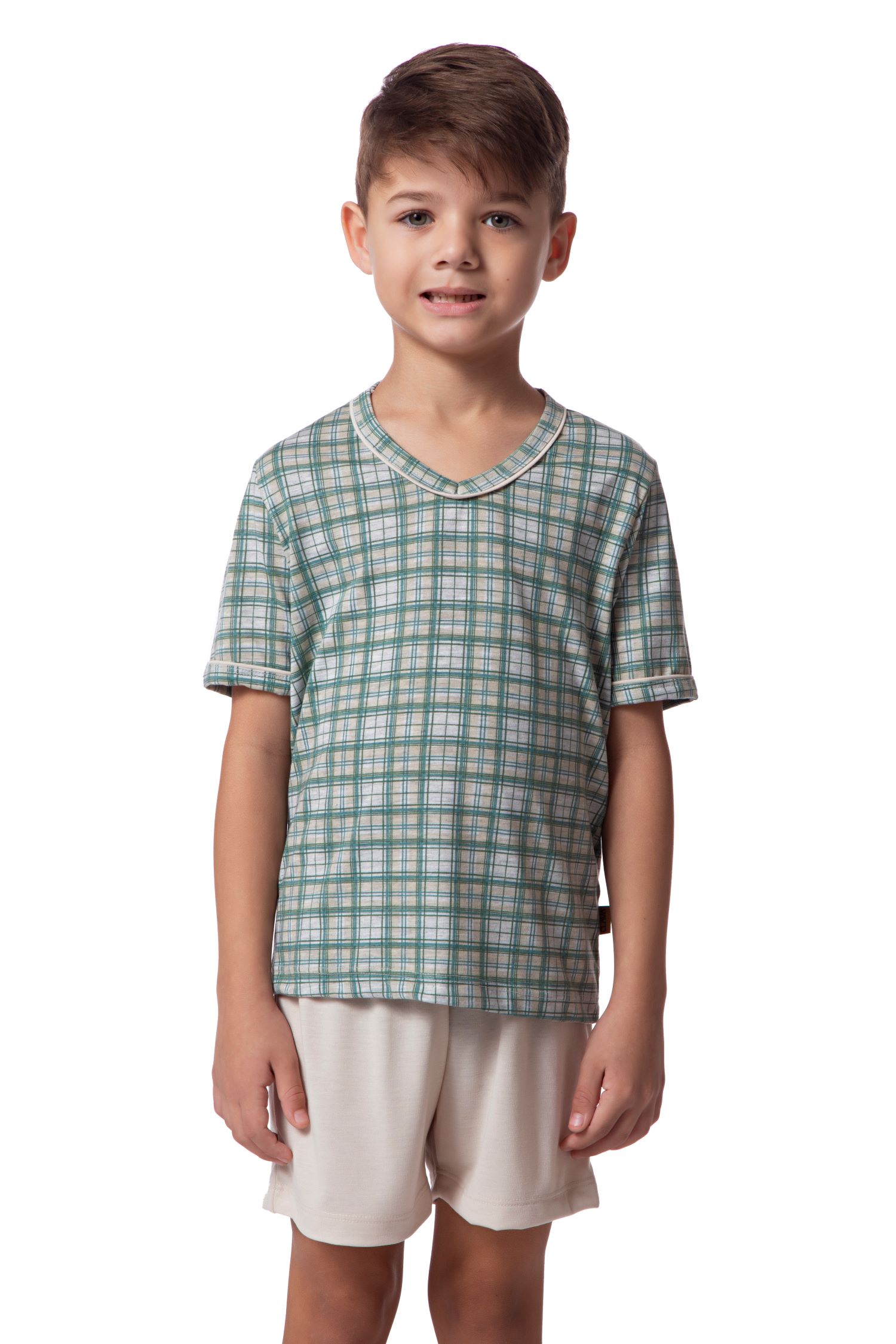 Pijama sinônimo de conforto, o clássico pijama Arthur de poliviscose com variações de cores e, que atende a diversos públicos, é composto pela camiseta estampada e bermuda em cor lisa. Os detalhes ficam por conta do vivo no decote em "V" e nas mangas. *Produto vendido individualmente. Não acompanha demais produtos ou acessórios visíveis na imagem.