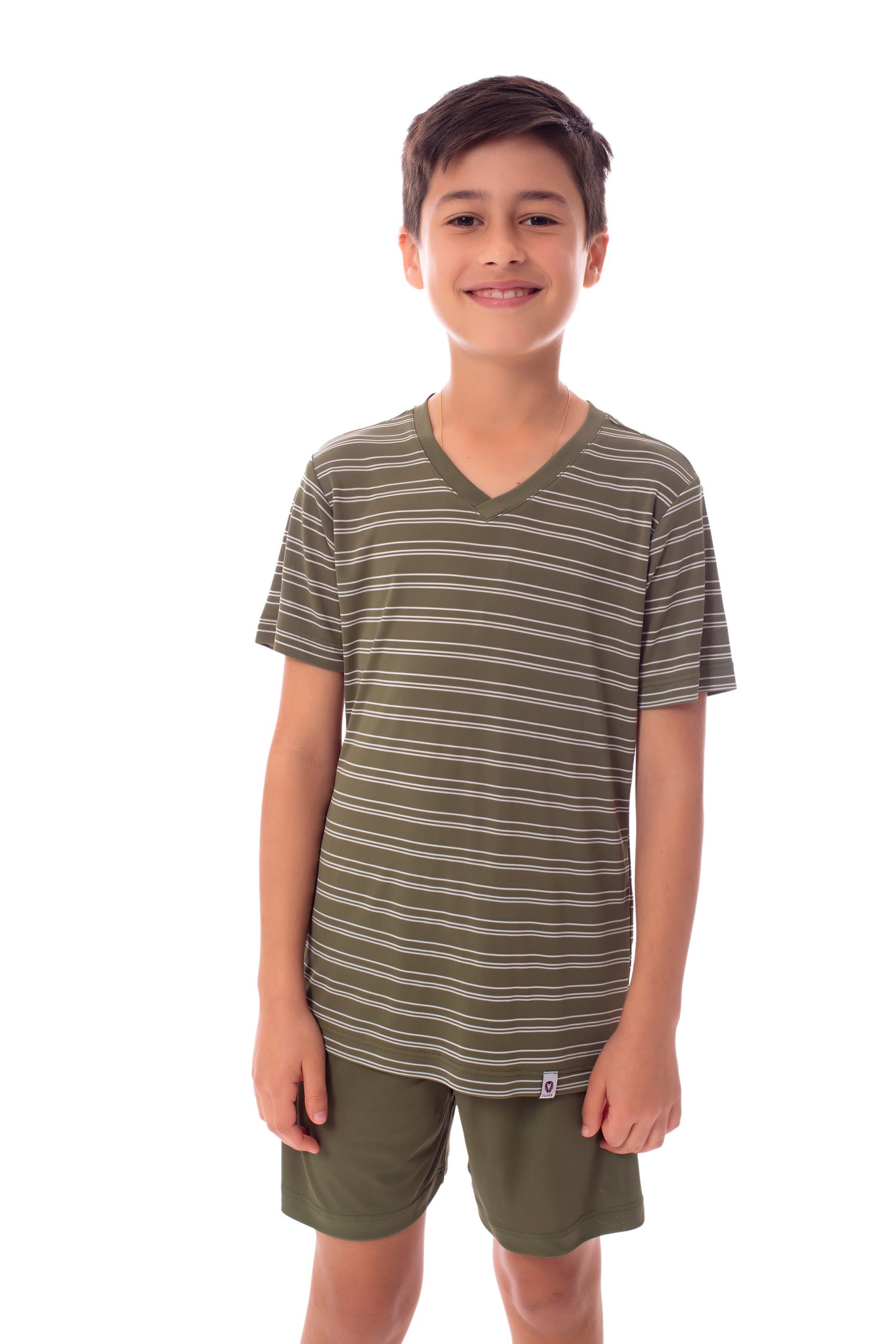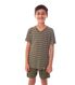 Pijama Infantil Masculino Heitor Curto - Conjunto de pijama composto por camiseta de manga curta e bermuda, ideal para os dias mais quentes. A parte superior é confeccionada em Malha Plume listrada ? um tecido leve, ultramacio e com toque sedoso, que proporciona conforto térmico e excelente caimento. A camiseta apresenta modelagem confortável, com listras horizontais sutis que conferem um visual contemporâneo e delicado. A bermuda lisa, feita no mesmo material em cor coordenada, tem cós elástico embutido, garantindo ajuste prático e liberdade de movimentos. Um conjunto que une estilo, funcionalidade e bem-estar para o momento de descanso.