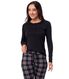 O pijama ANGEL é um produto de linha que possui ótima aceitação por suas características próprias, como o cós sem elástico que agrada as gestantes, as que passaram por algum tipo de cirurgia ou qualquer pessoa que não gosta de elástico na cintura. A modelagem da calça é ajustada, tipo legging e o cós é regulável. Na blusa, a abertura com patê fornece um detalhe bonito e funcional, que também agrada as lactantes. O artigo utilizado na sua produção é o suede light, malha extremamente aconchegante e macia, com toque de pele de pêssego. A blusa lisa contrasta com a padronagem xadrez da calça, criando um lindo pijama clássico e moderno ao mesmo tempo. Disponibilizamos também a versão masculina e infantil, para conectar casais e famílias.