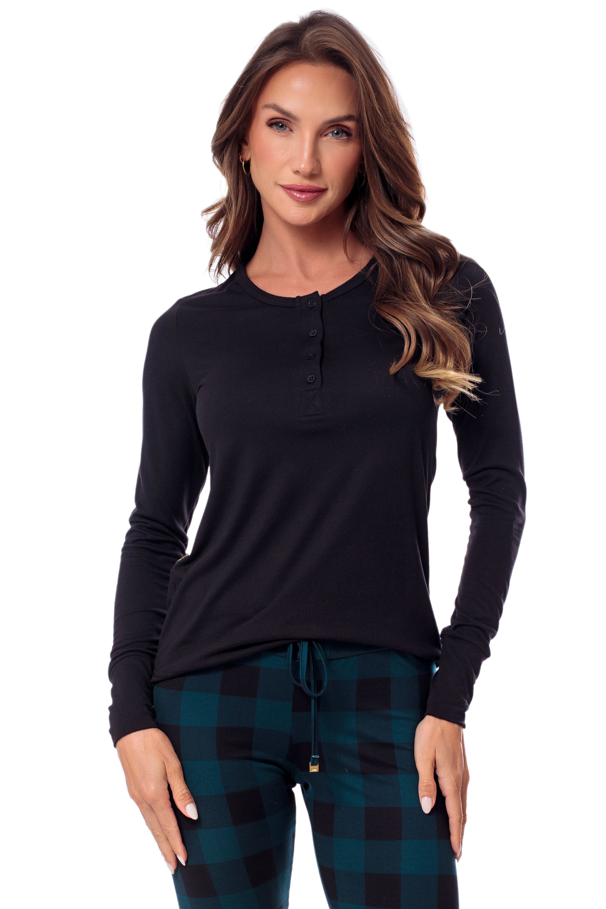 O pijama ANGEL é um produto de linha que possui ótima aceitação por suas características próprias, como o cós sem elástico que agrada as gestantes, as que passaram por algum tipo de cirurgia ou qualquer pessoa que não gosta de elástico na cintura. A modelagem da calça é ajustada, tipo legging e o cós é regulável. Na blusa, a abertura com patê fornece um detalhe bonito e funcional, que também agrada as lactantes. O artigo utilizado na sua produção é o suede light, malha extremamente aconchegante e macia, com toque de pele de pêssego. A blusa lisa contrasta com a padronagem xadrez da calça, criando um lindo pijama clássico e moderno ao mesmo tempo. Disponibilizamos também a versão masculina e infantil, para conectar casais e famílias.