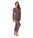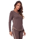 O pijama DANY traz para a coleção um listrado muito elegante, bicolor, minimalista. Produzido malha massimo, que possui a viscose como principal componente, este modelo traz um certo frescor, e por não ser muito quente é ideal para meia estação. Sua modelagem básica é enriquecida com acabamentos em viés de lurex, que traz um brilho discreto ao modelo.