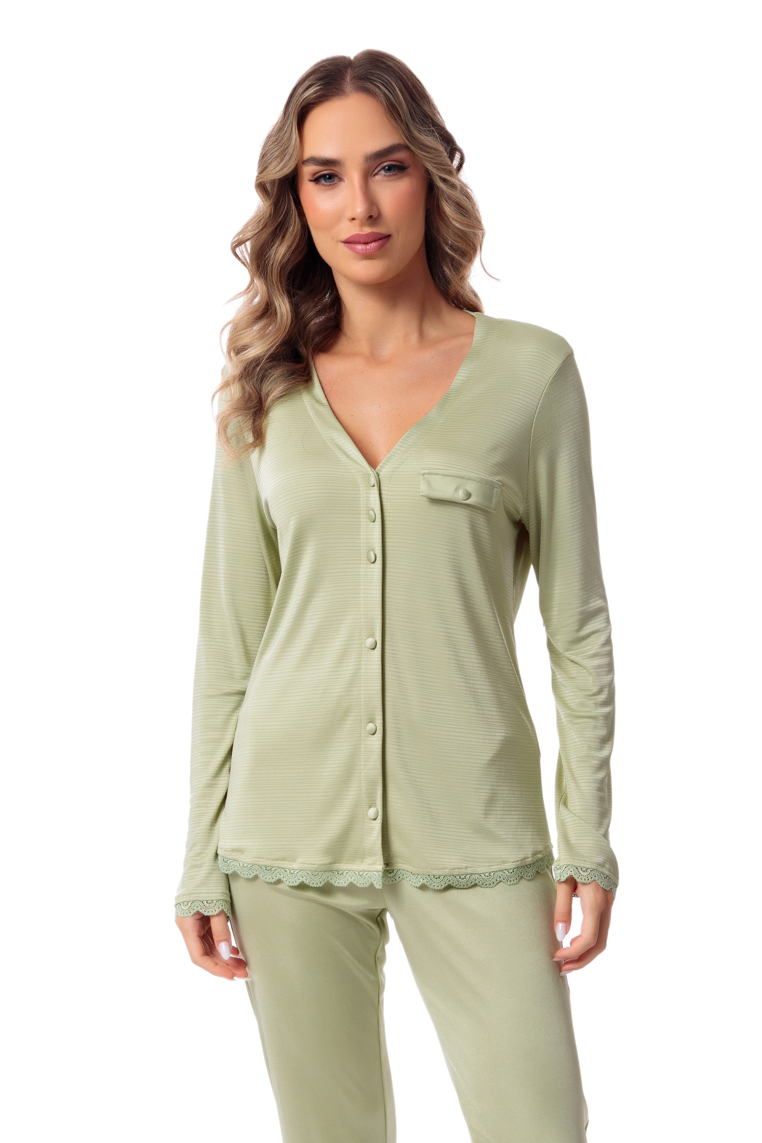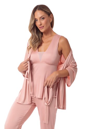 O Pijama Elis possui abertura na frente com botões cuidadosamente forrados da mesma malha, para dar um aspecto mais nobre ao modelo. Sua modelagem é muito útil em processos cirúrgicos, além de agradar também as mamães que amamentam. Os acabamentos em renda dão um ar de delicadeza ao modelo, que foi desenvolvido em malha plume, popularmente conhecida como ?malha fria?. Esta malha foi feita a partir da perfeita combinação entre o design e a inovadora tecnologia da poliamida Amni, proporcionando respirabilidade, fácil lavagem e secagem, artigo produzido de forma sustentável. É uma malha de alta durabilidade, leve e fluida.