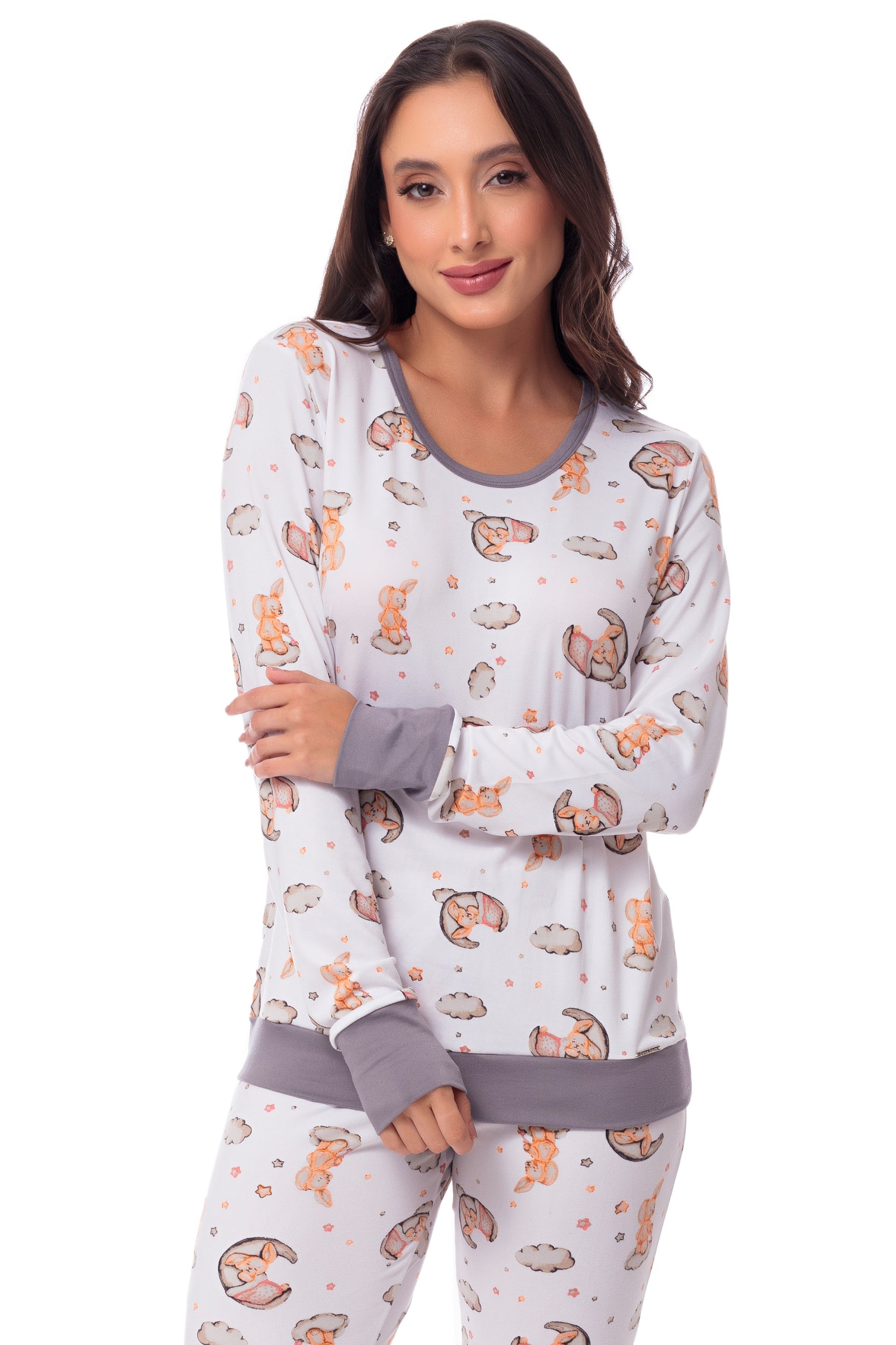 O pijama FOFY é básico e divertido. Trata-se do tradicional pijama estampado, de modelagem simples que todos já tiveram algum dia. A estampa tem um toque vintage, pois lembra os pijaminhas do passado, todo estampado de bichinhos. para vestir de forma fofa e alegre. A malha Soft Plush é conhecida por sua textura suave e macia, de toque aveludado. Este modelo nasceu do sucesso da versão infantil. Agora mamães, filhos e filhas podem se divertir e se conectar através das peças nas noites de inverno.