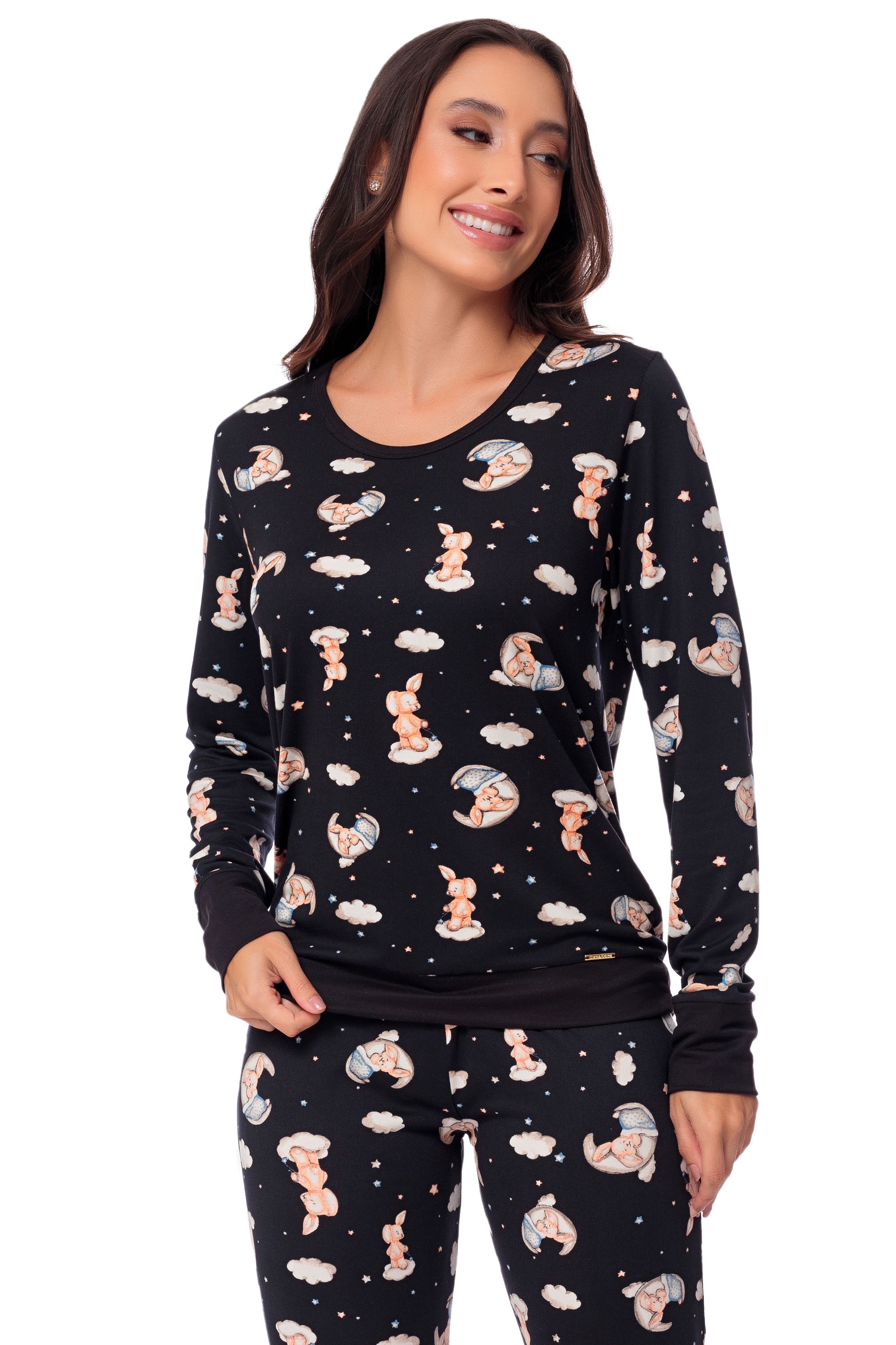 O pijama FOFY é básico e divertido. Trata-se do tradicional pijama estampado, de modelagem simples que todos já tiveram algum dia. A estampa tem um toque vintage, pois lembra os pijaminhas do passado, todo estampado de bichinhos. para vestir de forma fofa e alegre. A malha Soft Plush é conhecida por sua textura suave e macia, de toque aveludado. Este modelo nasceu do sucesso da versão infantil. Agora mamães, filhos e filhas podem se divertir e se conectar através das peças nas noites de inverno.
