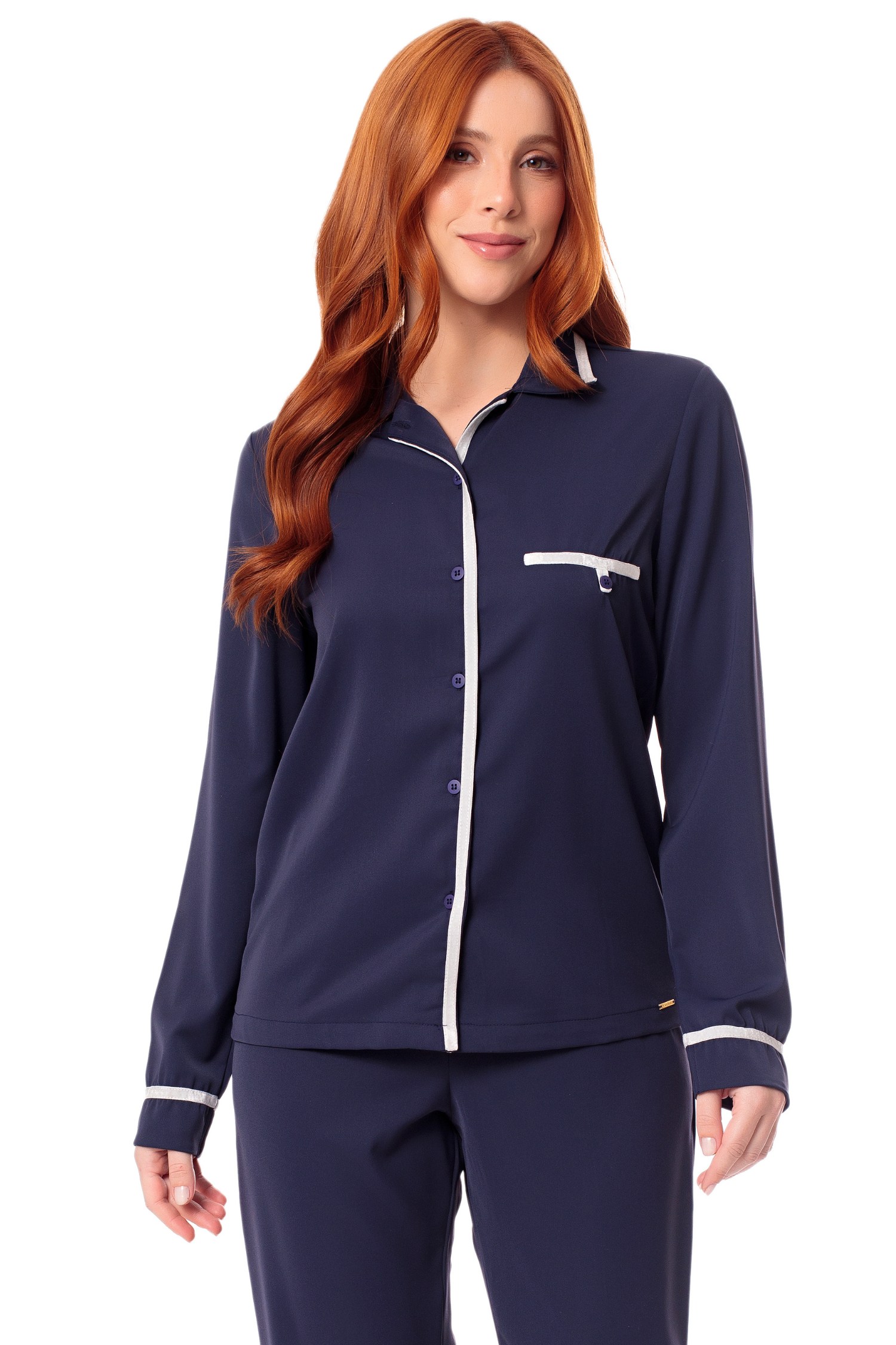 O pijama GRÉCIA foi inspirado em uma mulher de estilo elegante. Isso porque o tecido plano deste modelo, denominado daiquiri, lembra uma seda e traz refinamento ao look. A modelagem é clássica, aberta tipo camisa e é diferenciada pela aplicação da fita de veludo nos acabamentos. As costuras são todas embutidas para aumentar a qualidade e atender as clientes mais exigentes. Este modelo ultrapassa os limites da roupa de dormir e pode ser usado nas ruas com muito estilo.