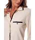 O pijama GRÉCIA foi inspirado em uma mulher de estilo elegante. Isso porque o tecido plano deste modelo, denominado daiquiri, lembra uma seda e traz refinamento ao look. A modelagem é clássica, aberta tipo camisa e é diferenciada pela aplicação da fita de veludo nos acabamentos. As costuras são todas embutidas para aumentar a qualidade e atender as clientes mais exigentes. Este modelo ultrapassa os limites da roupa de dormir e pode ser usado nas ruas com muito estilo.