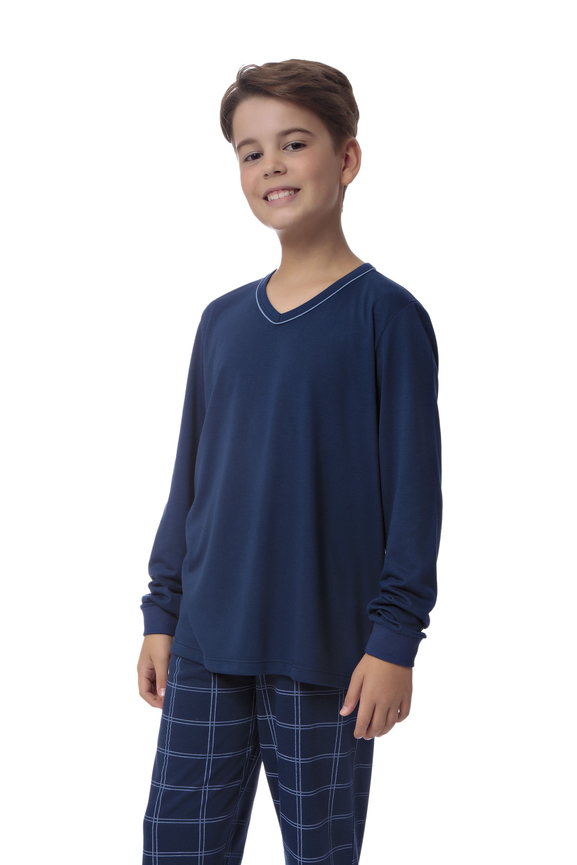 Combinando padronagens clássicas masculinas com lisos neutros, o Pijama Arthur é mais um clássico da Divina Noite que agrada aos mais diversos estilos e idades. A poliviscose é uma malha fina, confortável e resistente e não amassa muito. É recomendada para os dias mais frios pois ajuda a manter a temperatura do corpo. Disponível na versão adulta para a diversão de pais e filhos. Produto com ótimos custo/benefício.