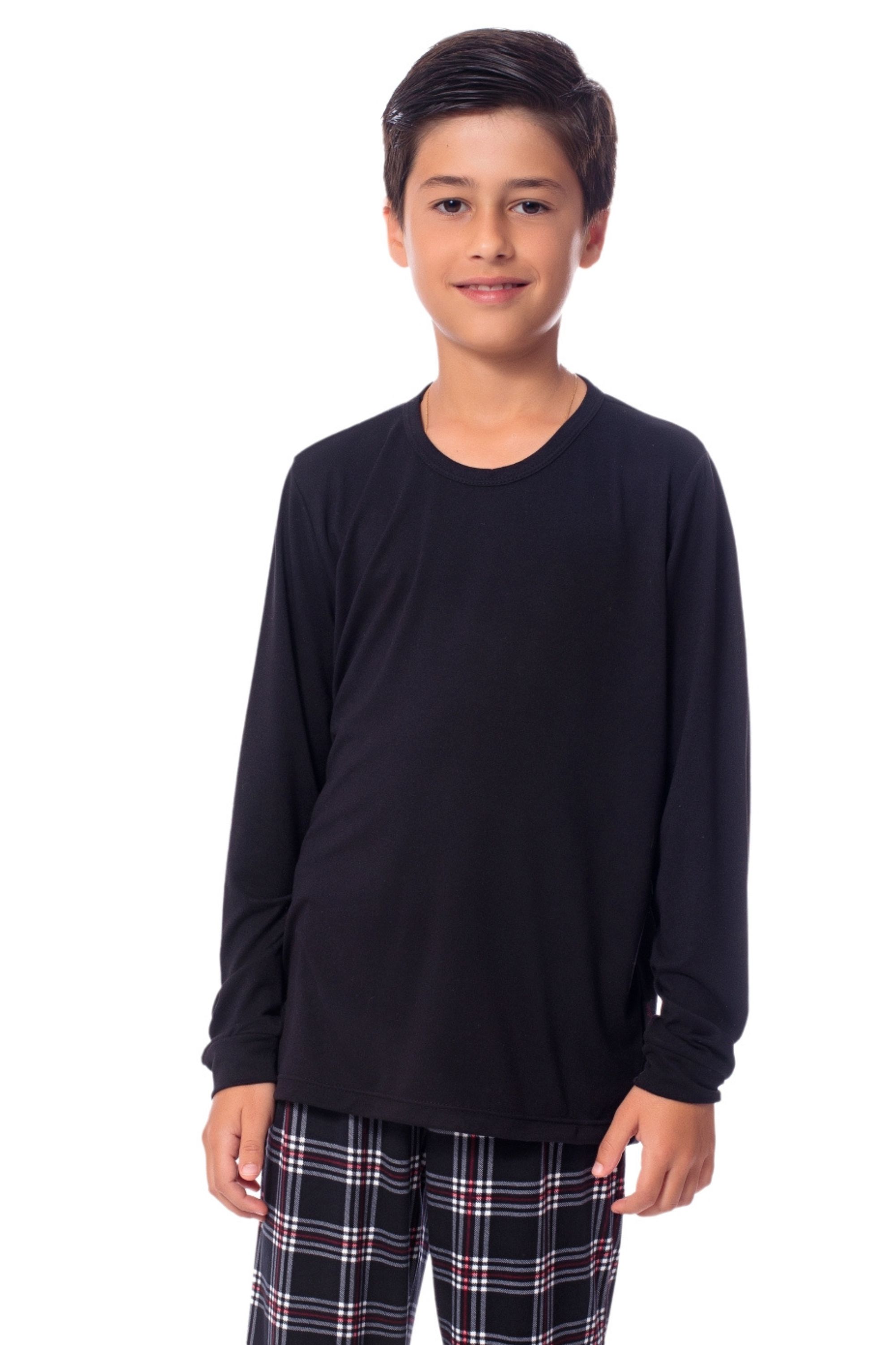 O pijama VALENTIM infantil foi desenvolvido para complementar a família, pois está disponível também na versão adulta para homens e mulheres. A malha utilizada no desenvolvimento deste produto foi o suede light, que tem um toque de pele de pêssego, o que torna este pijama extremamente macio e aconchegante. *Imagem ilustrativa da estampa xadrez marinho. A venda do modelo adulto é feita separadamente.
