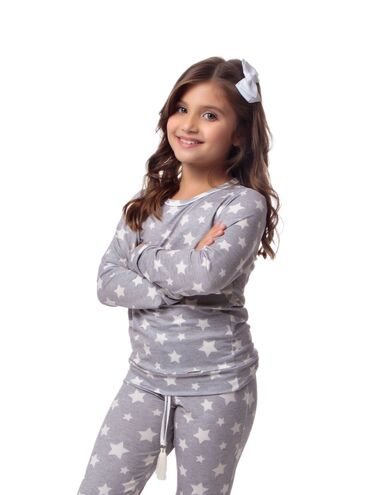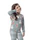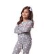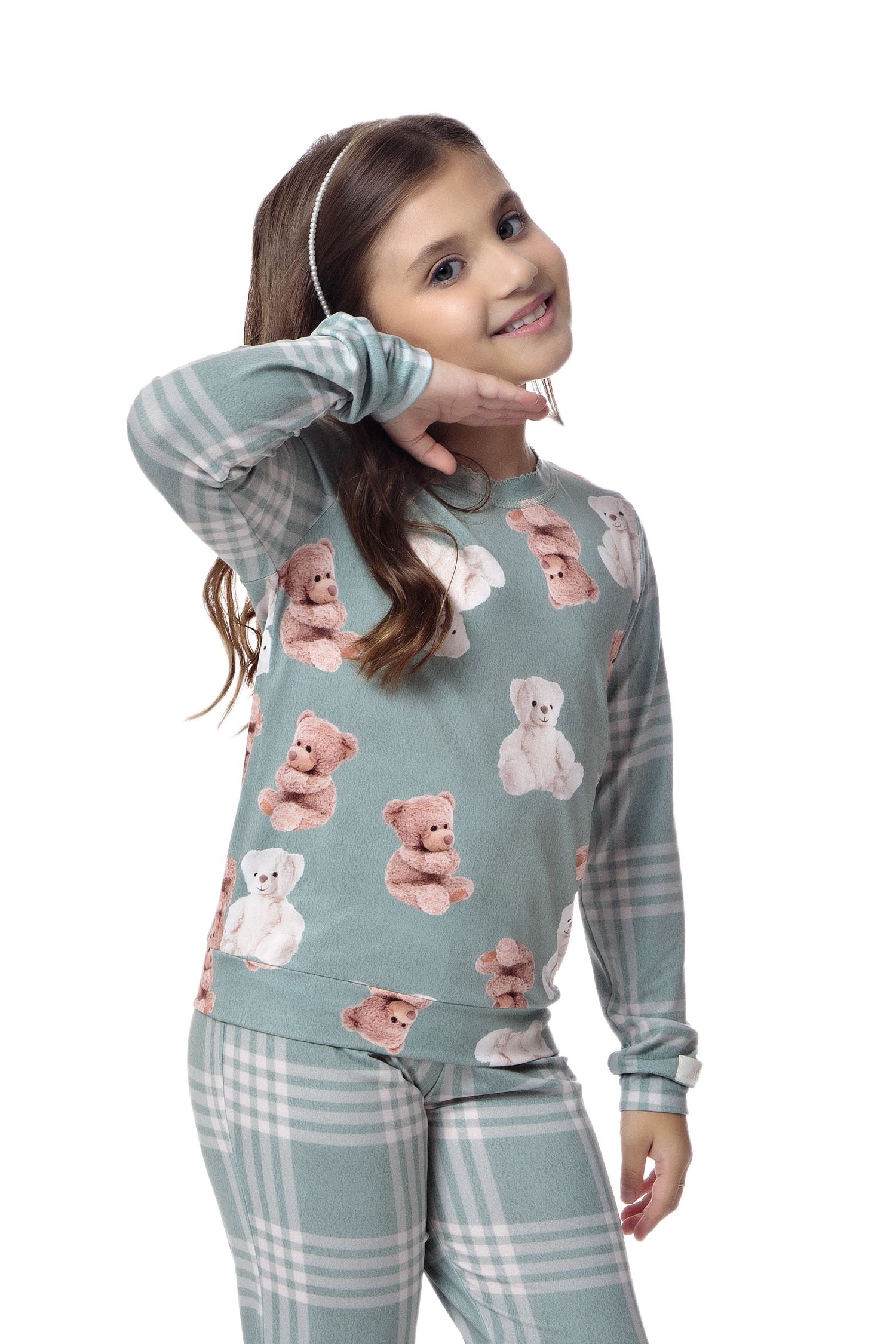 O PIJAMA INFANTIL MISSY foi elaborado com a Malha Dreams, super leve e de toque extremamente macio e confortável. A estampa é divertida e atende mães e filhas que adoram essa brincadeira de se vestirem iguais, pois está disponível na versão adulta também. O detalhe franzido na barra da calça oferece charme na medida certa para o modelo.