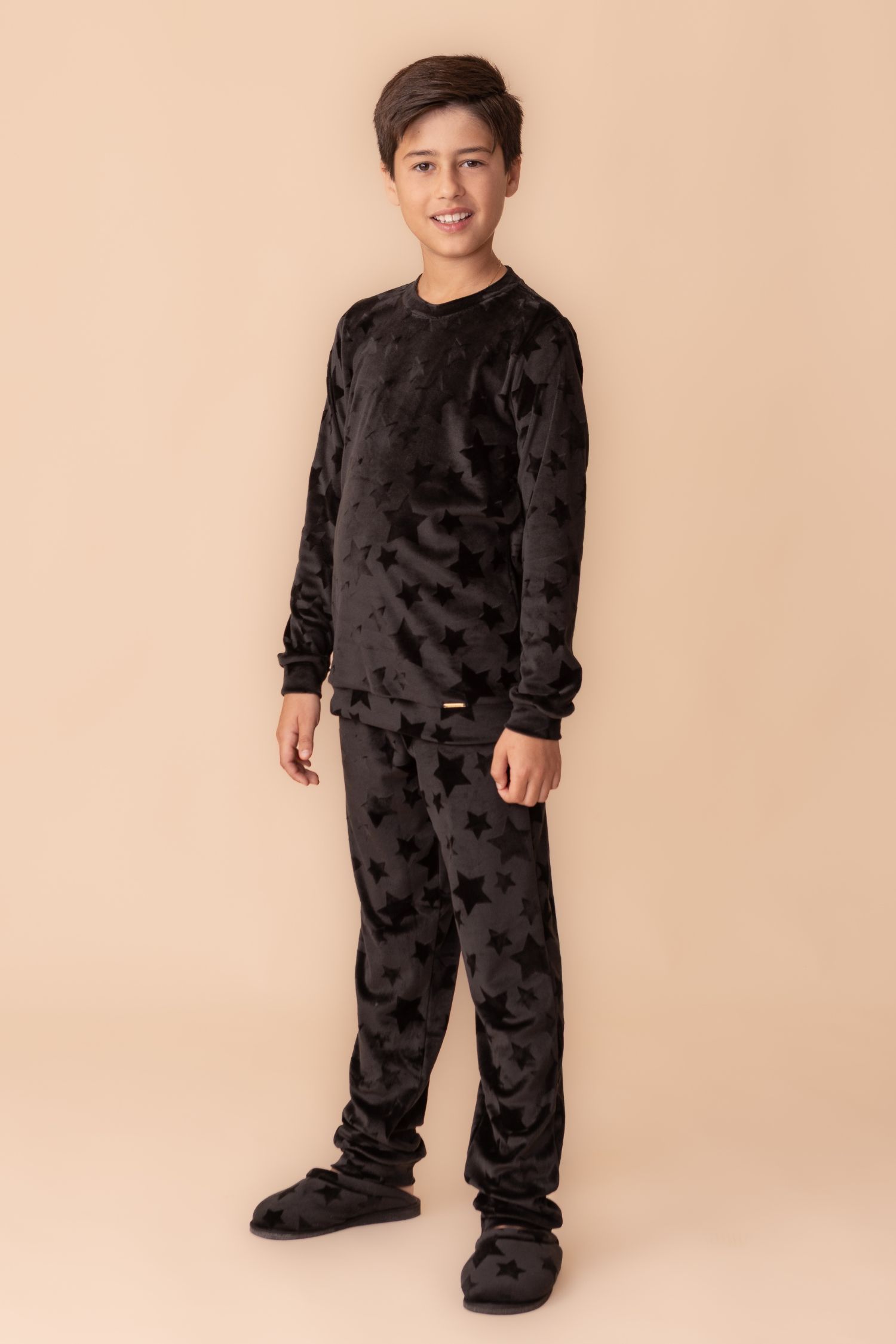 O PIJAMA INFANTIL STELLAR é um produto de extremo conforto e beleza. A malha Soft Sense é aveludada, leve, macia e flexível. É de fácil manutenção pois não amarrota facilmente. Sua alta elasticidade, permite uma modelagem mais ajustada que se adapta aos mais diversos biotipos; e o trabalhado da superfície em estrelas cintilantes trazem todo o charme para o modelo. Um modelo que permite os movimentos e brincadeiras infantis. Está disponível também na versão adulta para fortalecer aquela conexão entre a família.