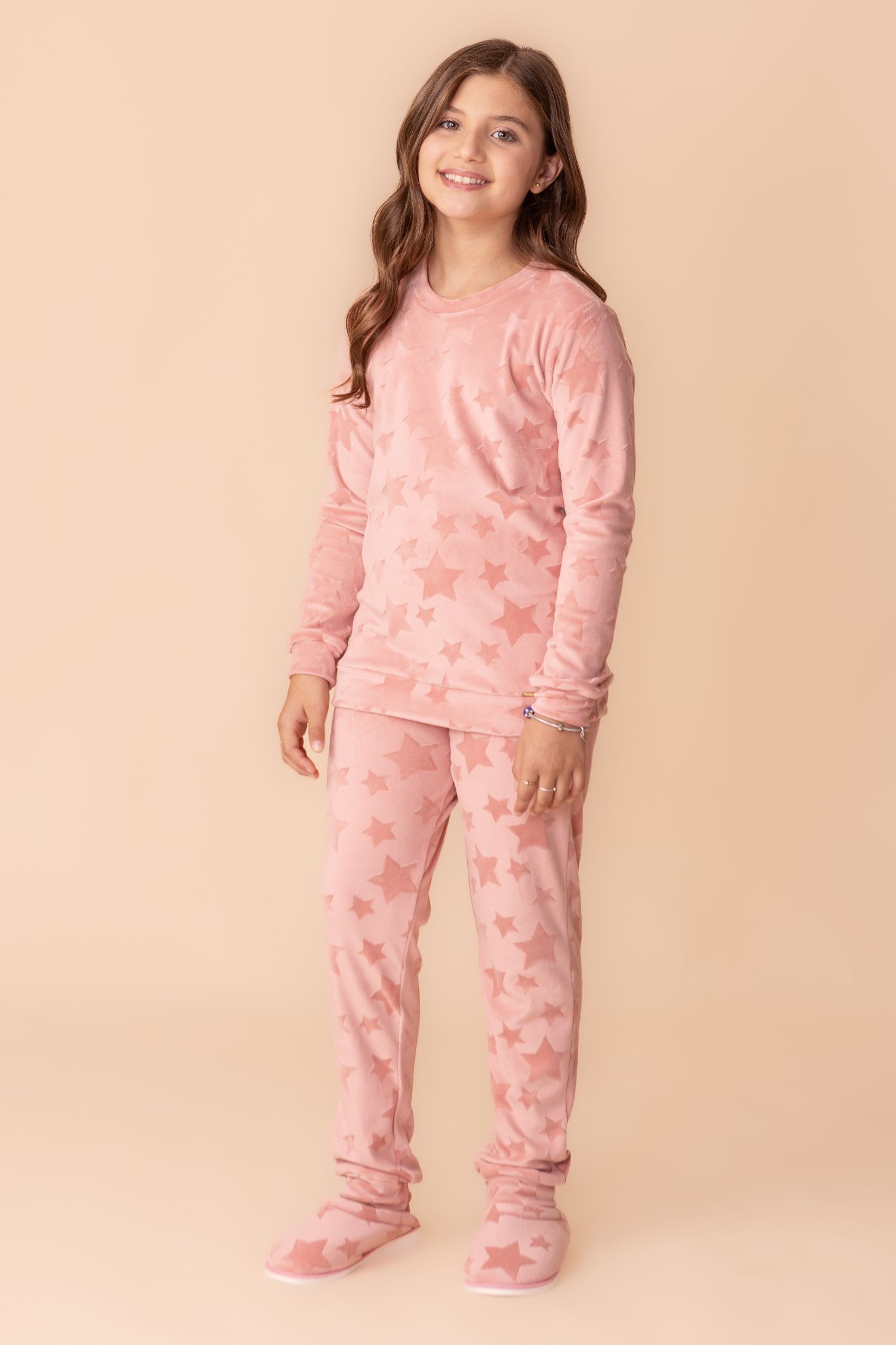 O PIJAMA INFANTIL STELLAR é um produto de extremo conforto e beleza. A malha Soft Sense é aveludada, leve, macia e flexível. É de fácil manutenção pois não amarrota facilmente. Sua alta elasticidade, permite uma modelagem mais ajustada que se adapta aos mais diversos biotipos; e o trabalhado da superfície em estrelas cintilantes trazem todo o charme para o modelo. Um modelo que permite os movimentos e brincadeiras infantis. Está disponível também na versão adulta para fortalecer aquela conexão entre a família.
