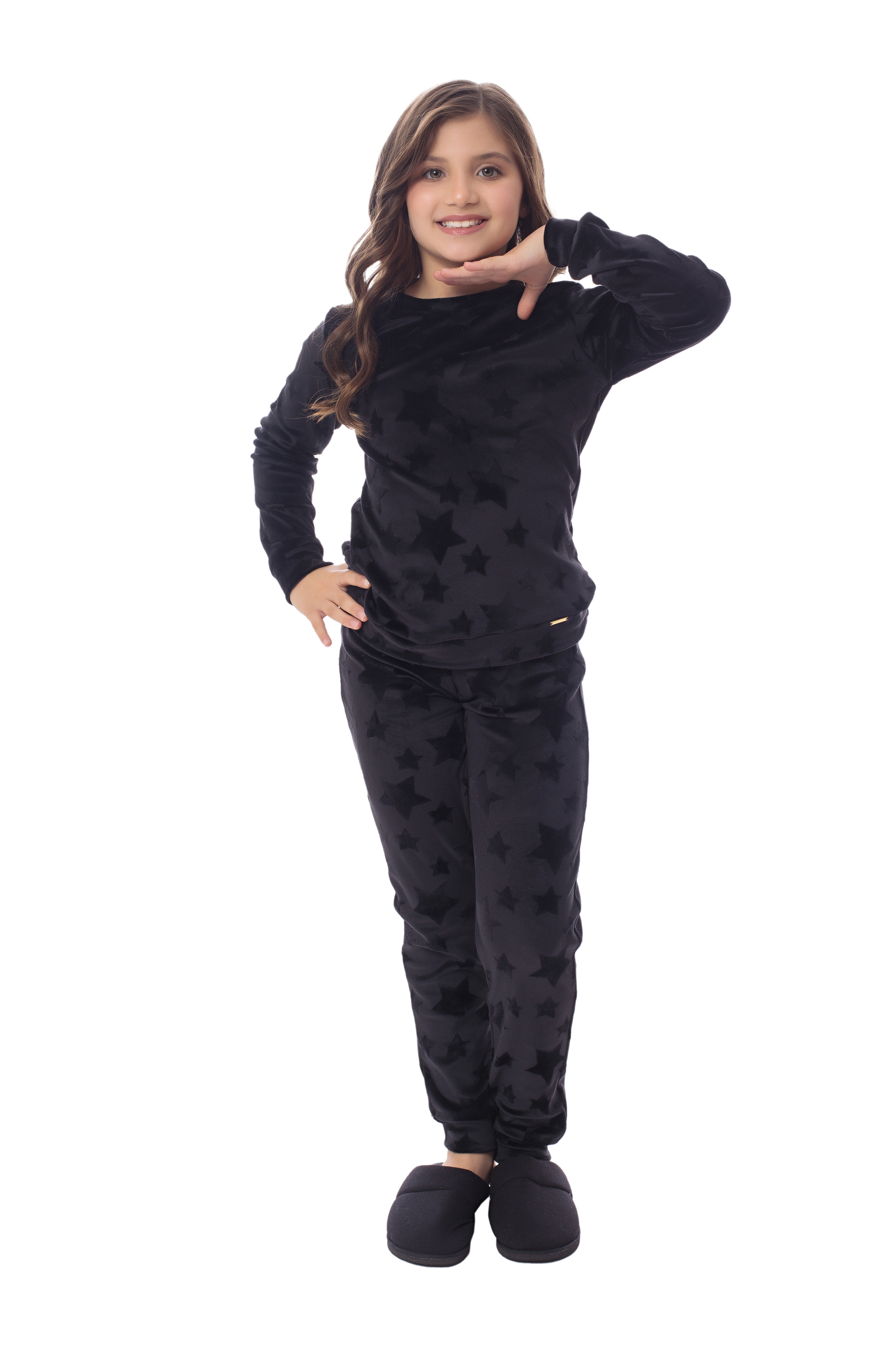 O pijama STELLAR infantil foi desenvolvido inspirado no sucesso do pijama Stellar adulto. É um produto de extremo conforto e beleza. A malha soft sense é aveludada, leve, macia e flexível. Sua alta elasticidade, permite uma modelagem mais ajustada, mas que não perde conforto para os movimentos infantis. O trabalhado da superfície em estrelas cintilantes trazem todo o charme para o modelo.